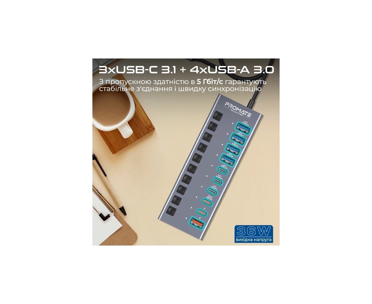 Описание Концентратор Promate USB-C 10-in-1 5xUSB-C + 5xUSB gray (gegahub-5g)