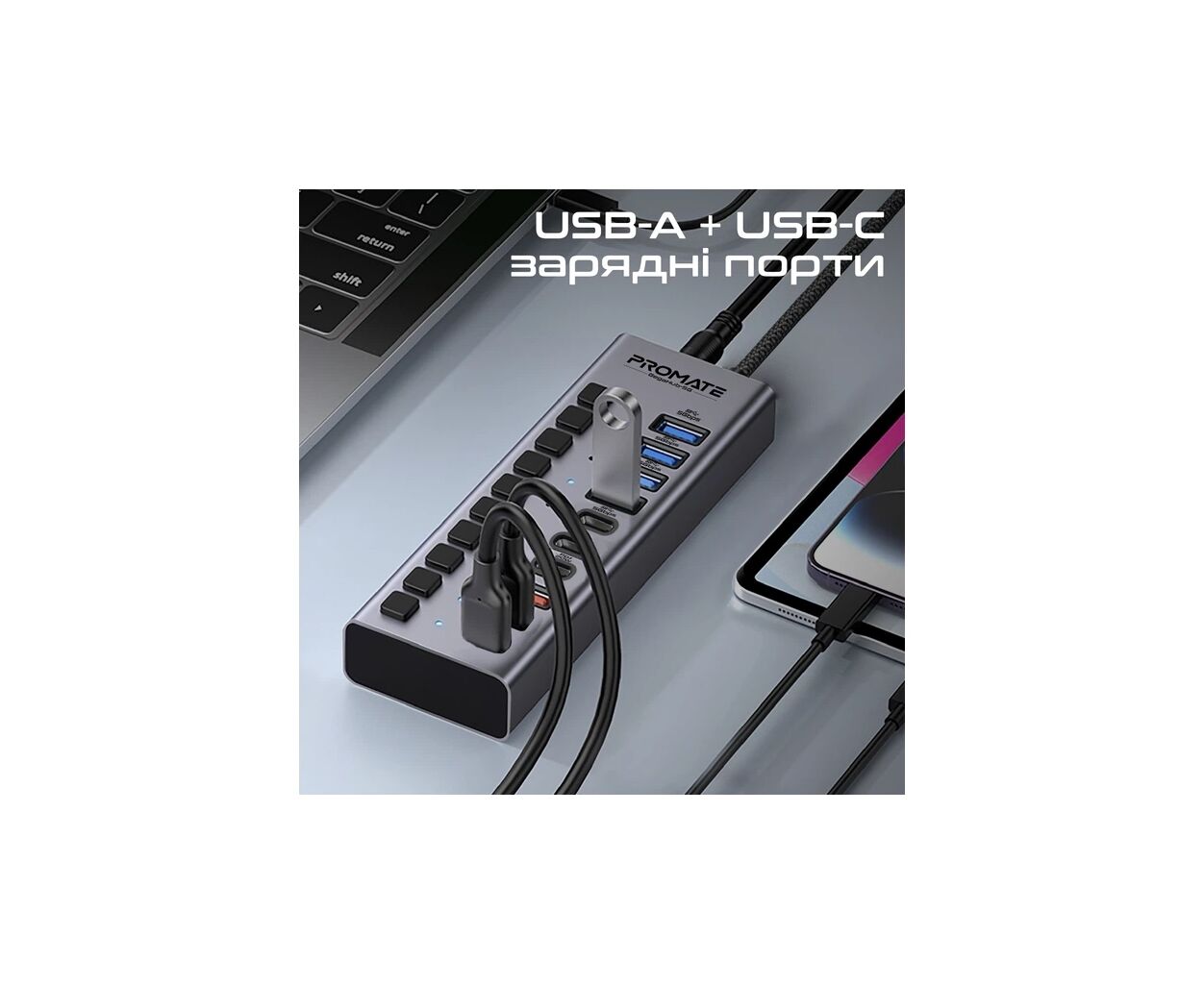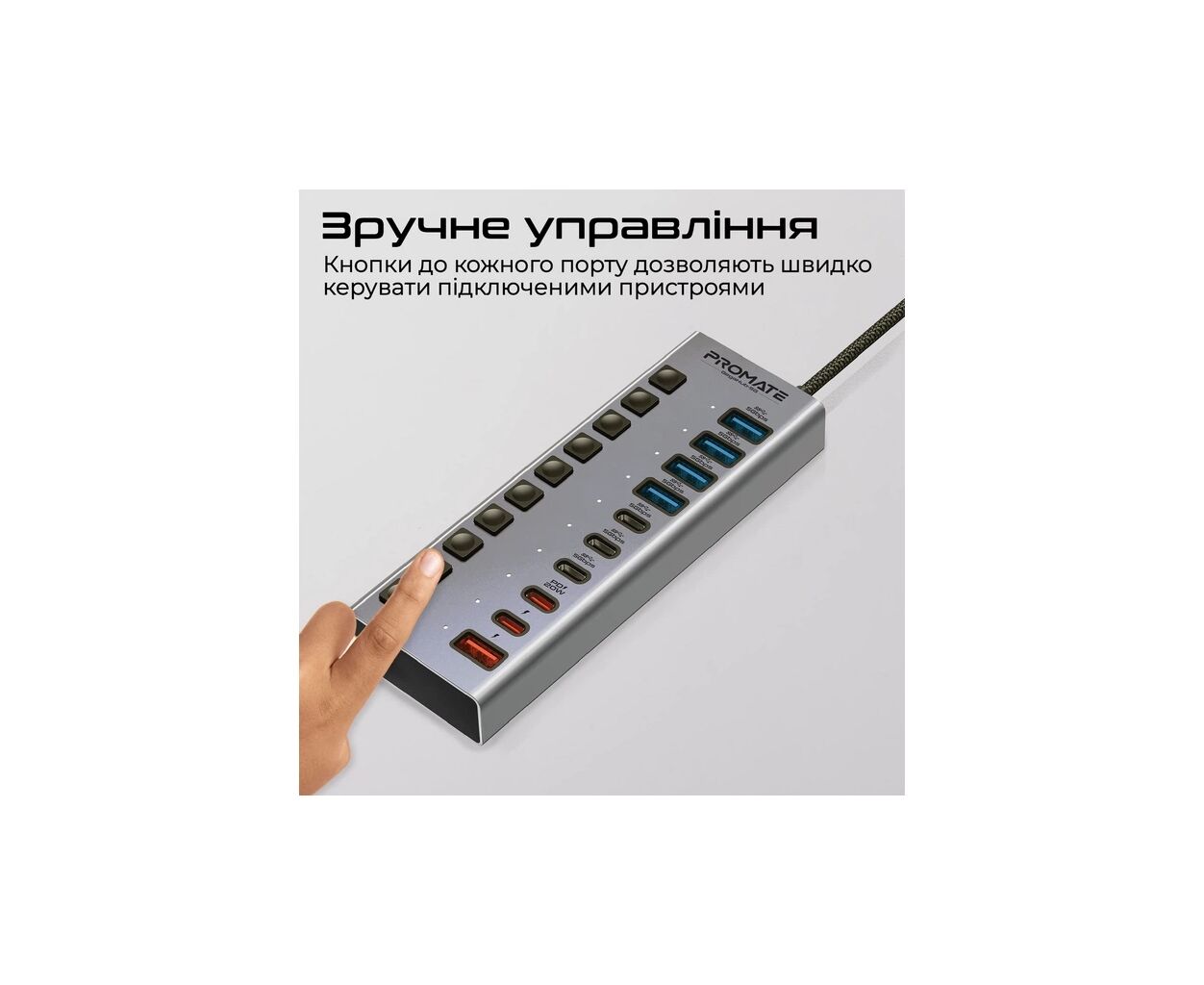 Концентратор Promate USB-C 10-in-1 5xUSB-C + 5xUSB gray (gegahub-5g)