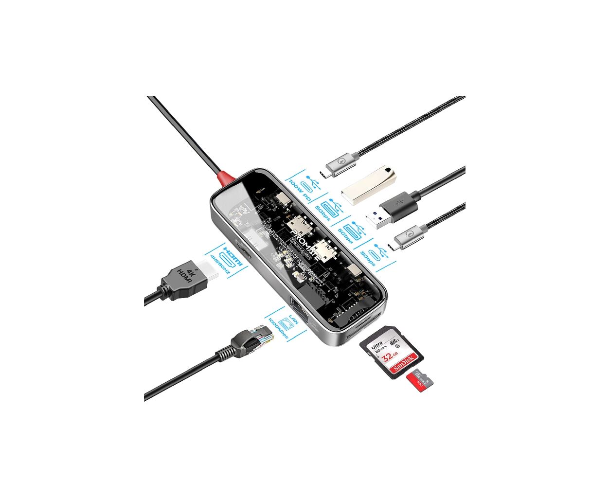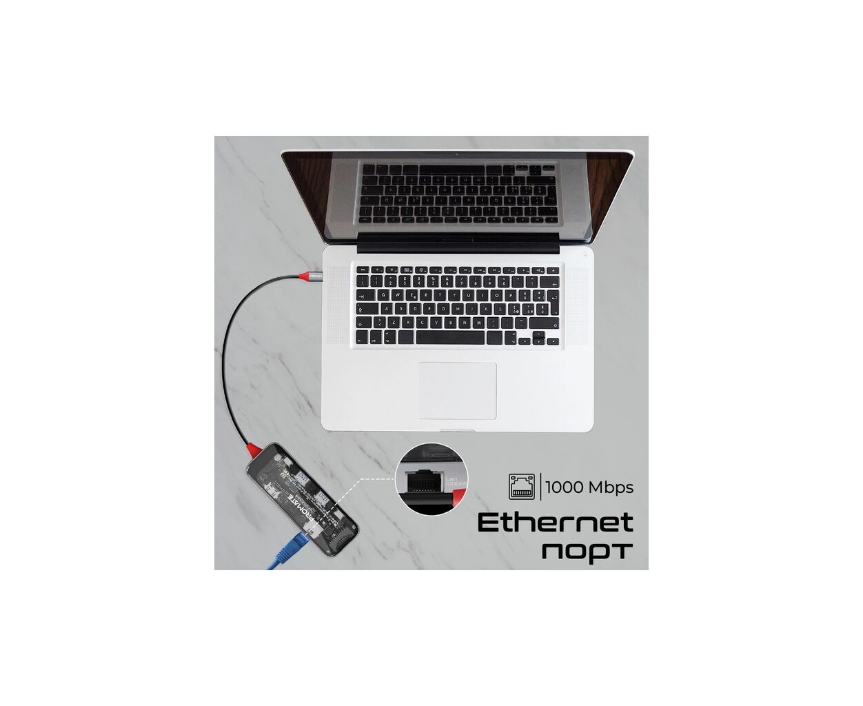 Отзывы о Концентратор Promate USB-C 8-in-1 USB-C PD100W + HDMI 4K60Hz + USBC + 2xUSB 3.0 + RJ45 1000Mbps + SD/MicroSD grey (transhub-mini) от реальных покупателей