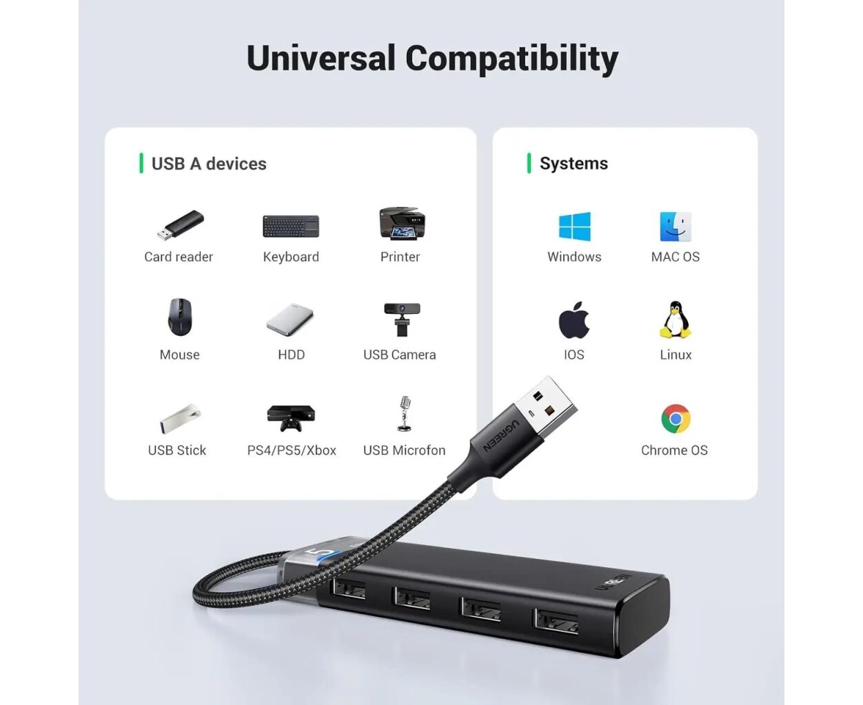 Описание Концентратор Ugreen USB 3.0 to 4xUSB 3.2 Gen1 CM653 black (15548)