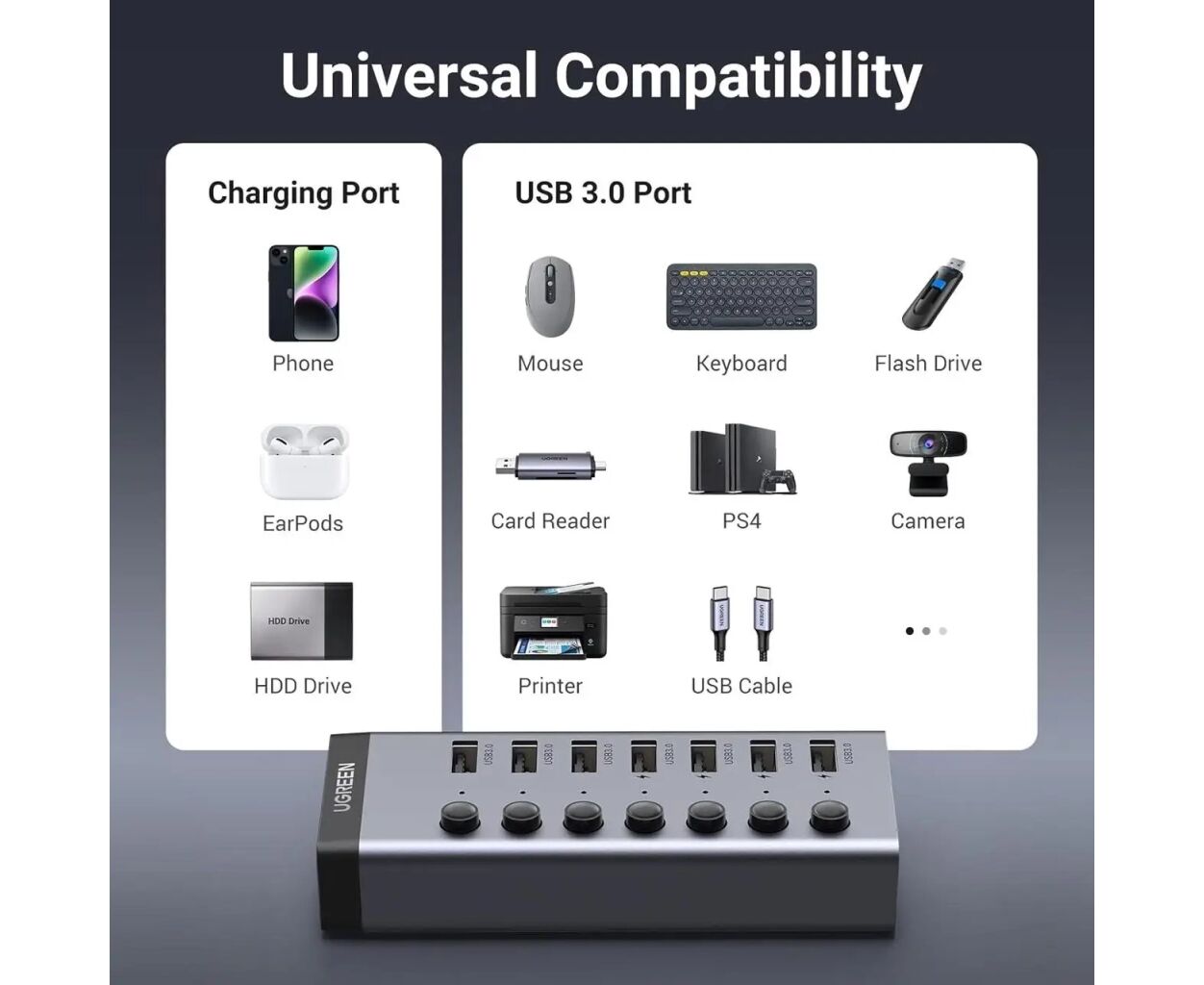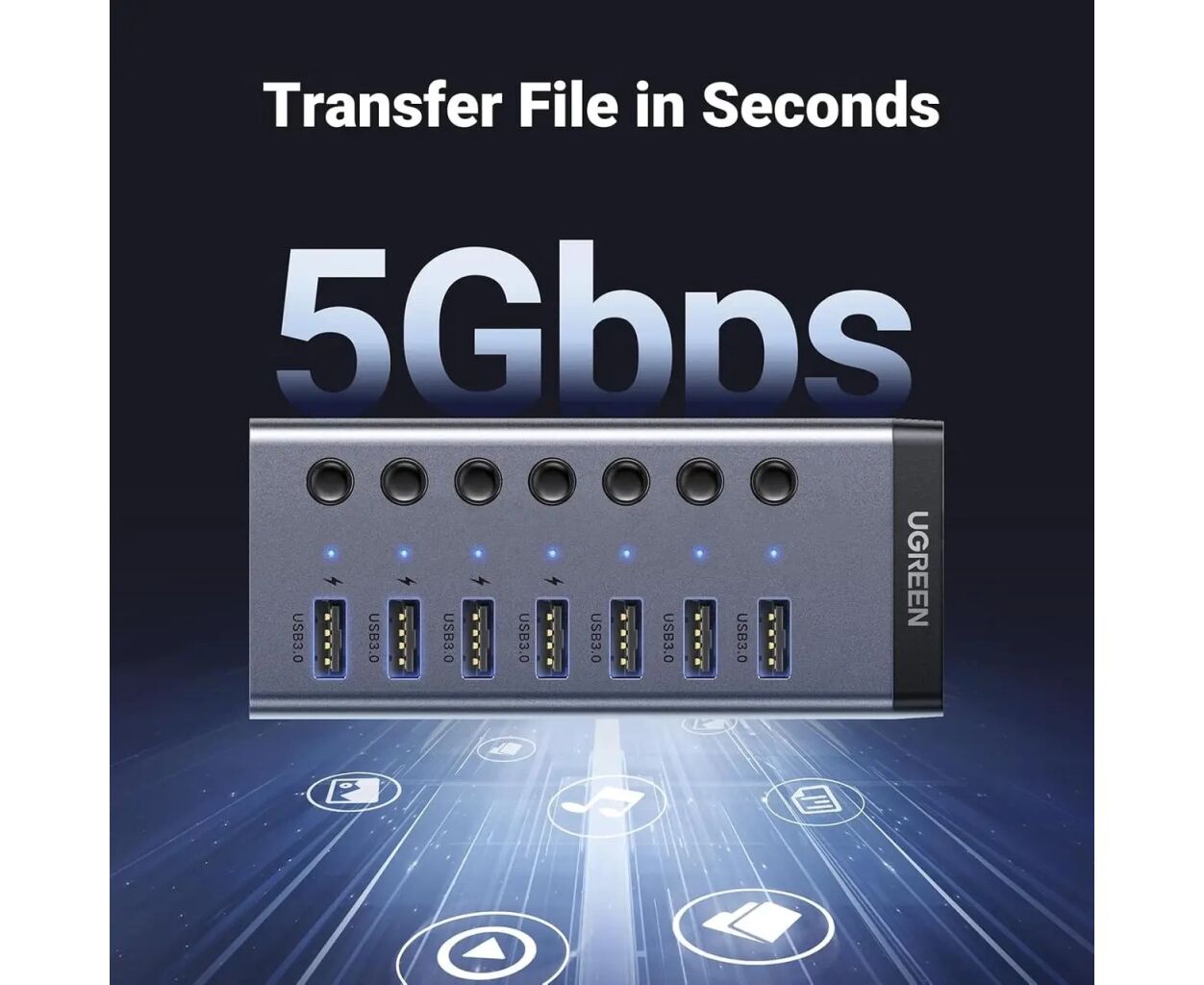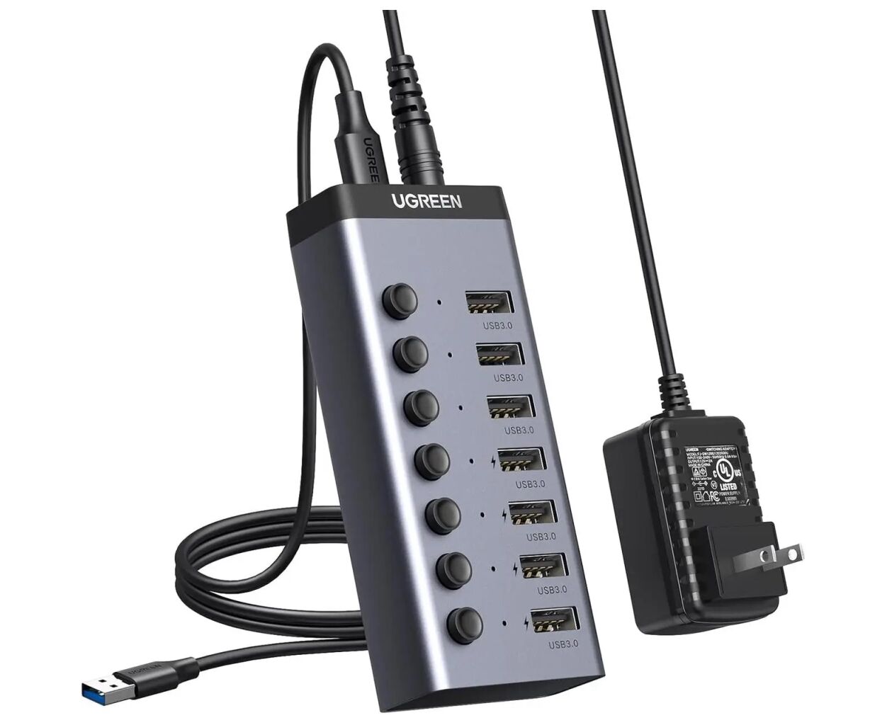 Описание Концентратор Ugreen USB 3.0 to 7xUSB 3.0 with power supply CM481 gray (90307)