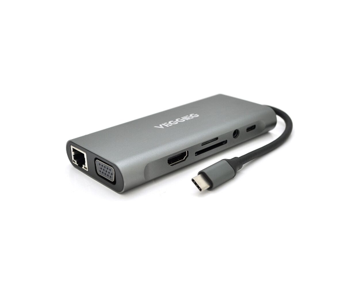 Характеристики Концентратор VEGGIEG USB-C 7-in-1 USB-C + 3xUSB 3.0 + HDMI + 3.5mm + SD/TF + RJ45 0.1m silver (TC11-S)
