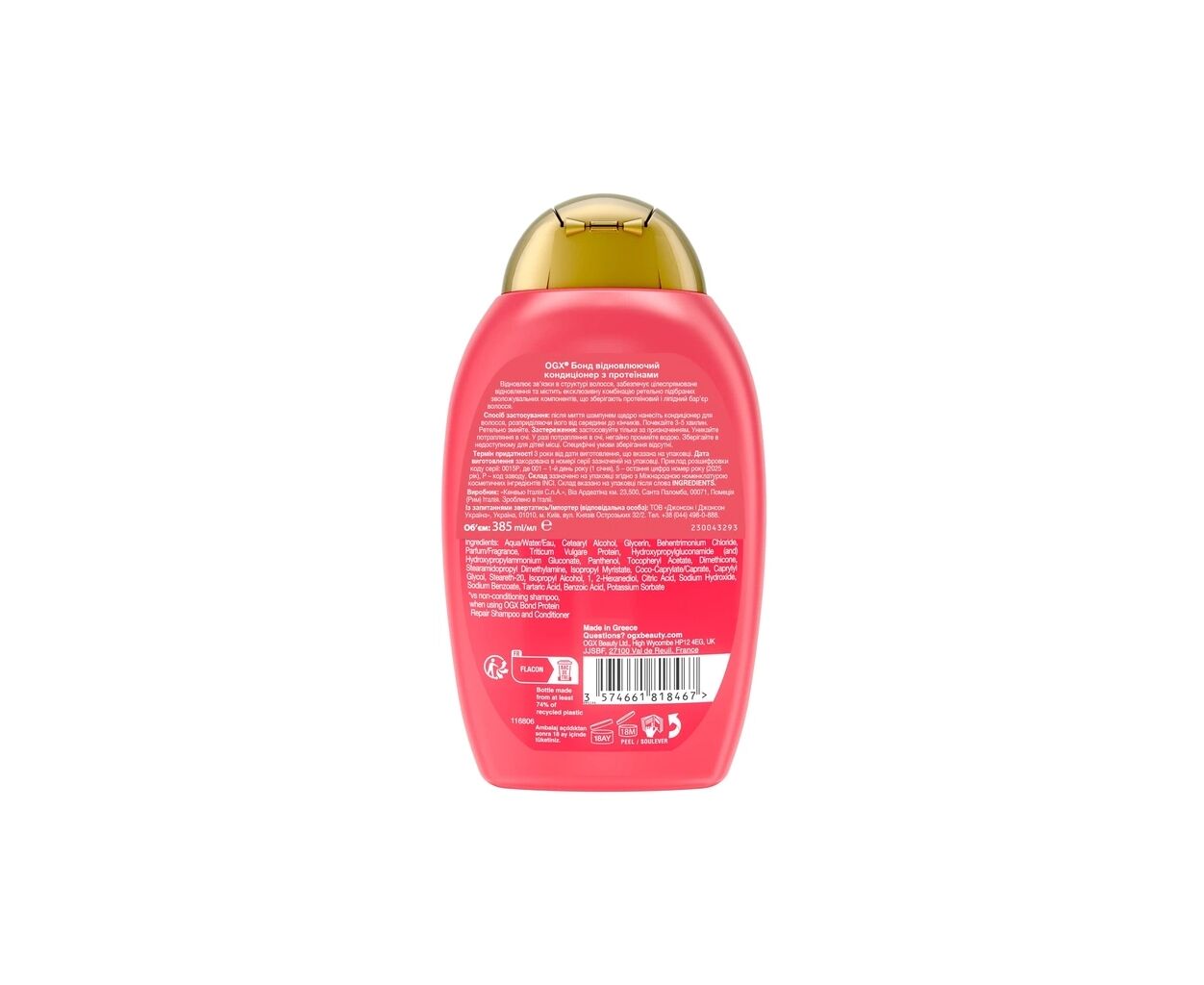 Характеристики Кондиционер для волос OGX Bond Protein Repair Восстанавливающий с протеинами 385 мл (3574661818467)