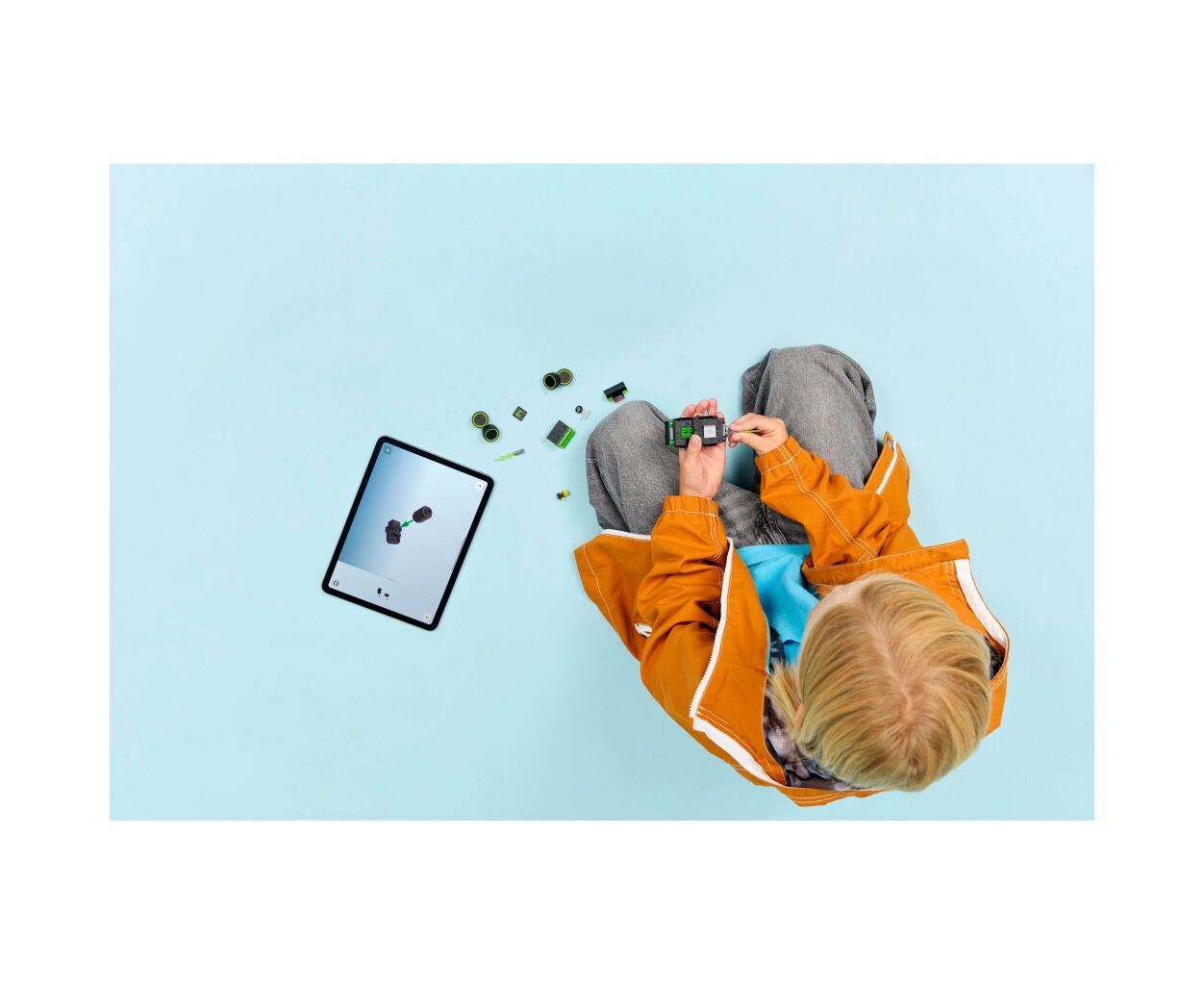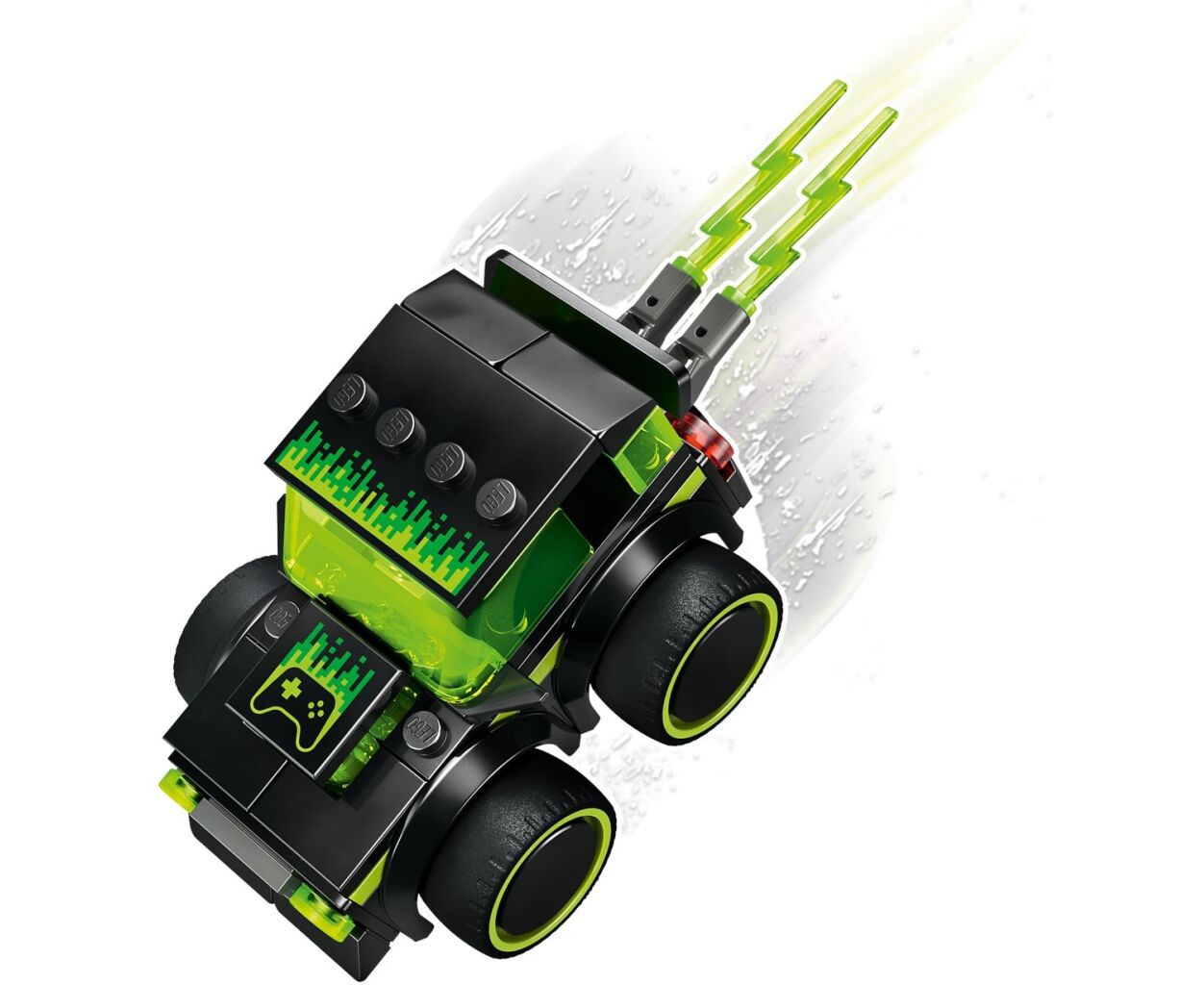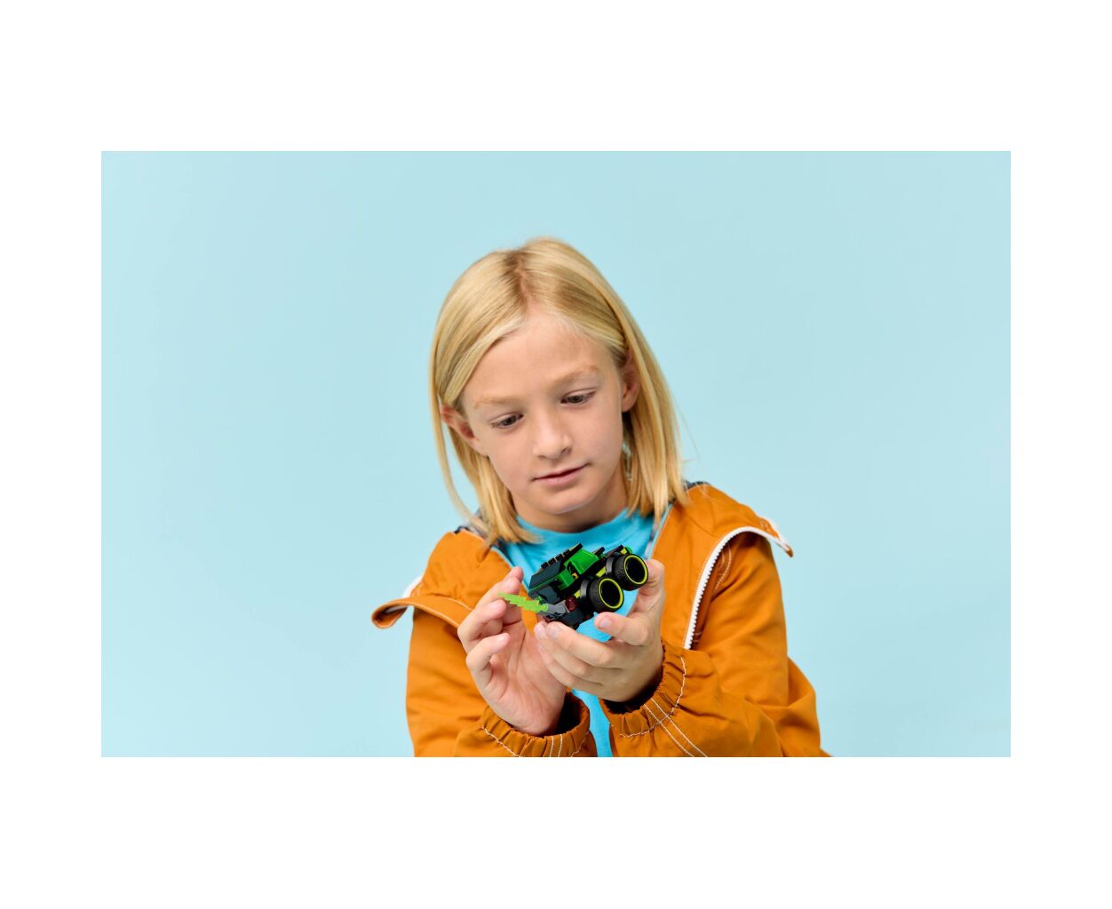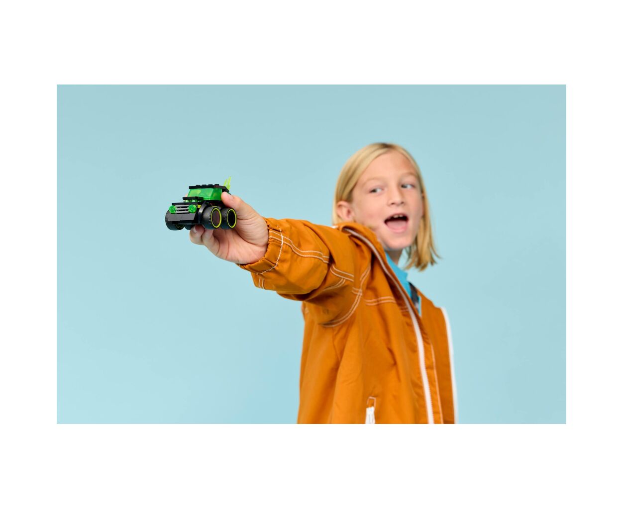 Игровая машина оснащена большими резиновыми шинами, которые обеспечивают плавное движение, и кабиной водителя, что приносит настоящее удовольствие от игры. Особая деталь — пламенная выхлопная труба, которая добавляет уникальности игрушке. В комплекте есть 64 пластиковые детали, каждая из которых дополняет общую композицию автомобиля длиной более 12 см.