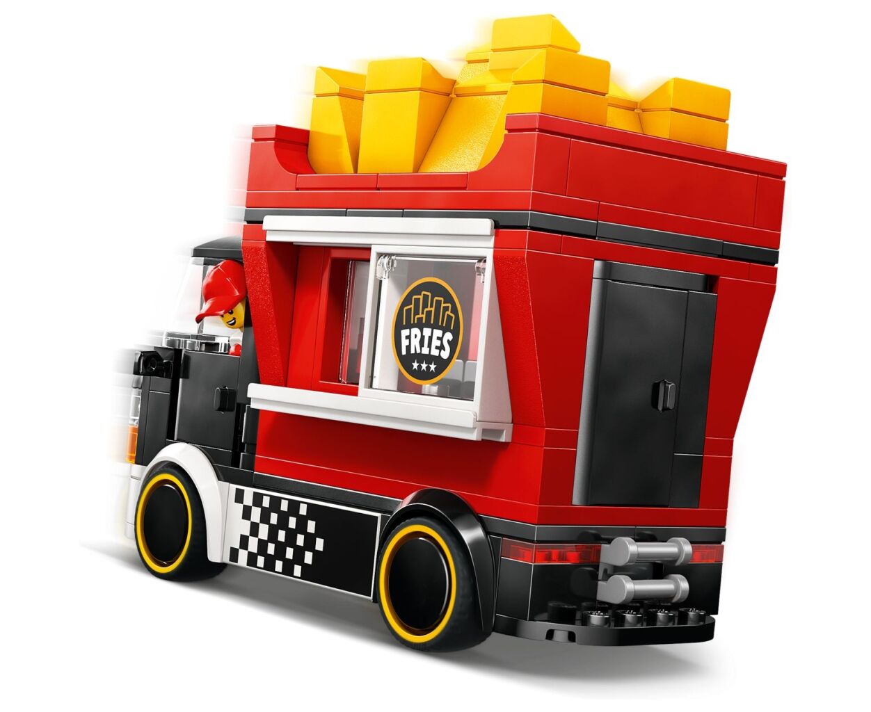 В серии LEGO City дети могут наслаждаться не только процессом сборки, но и разворачивать интересные сюжетные линии, имитируя жизнь города. Этот яркий грузовик для продажи еды имеет уникальный дизайн – съемный киоск в виде гигантской коробки с картофелем фри. Сняв крышу, юные кулинары получат доступ к детализированной зоне для приготовления еды, оснащенной фритюрницей и приправами, а раздвижное окно предоставит отличную возможность обслуживать клиентов.