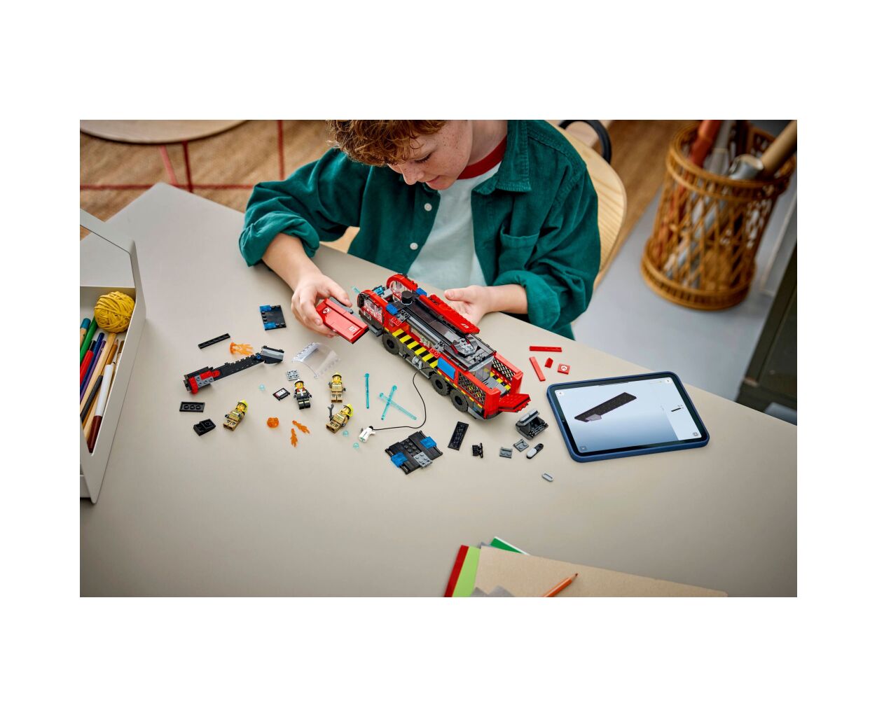 Кабина пожарной машины имеет место для четырех минифигурок пожарных, добавляя динамичности в игровые приключения. С шестью массивными резиновыми шинами, машина легко маневрирует в воображаемом аэропорту. Автоконструктор предлагает боковые отсеки для оборудования и возможность снятия двигателя для ремонта, что делает игру еще интереснее. Введя в игру элемент воображения, ваши дети могут почувствовать себя настоящими героями, которые побеждают пожары и спасают город!