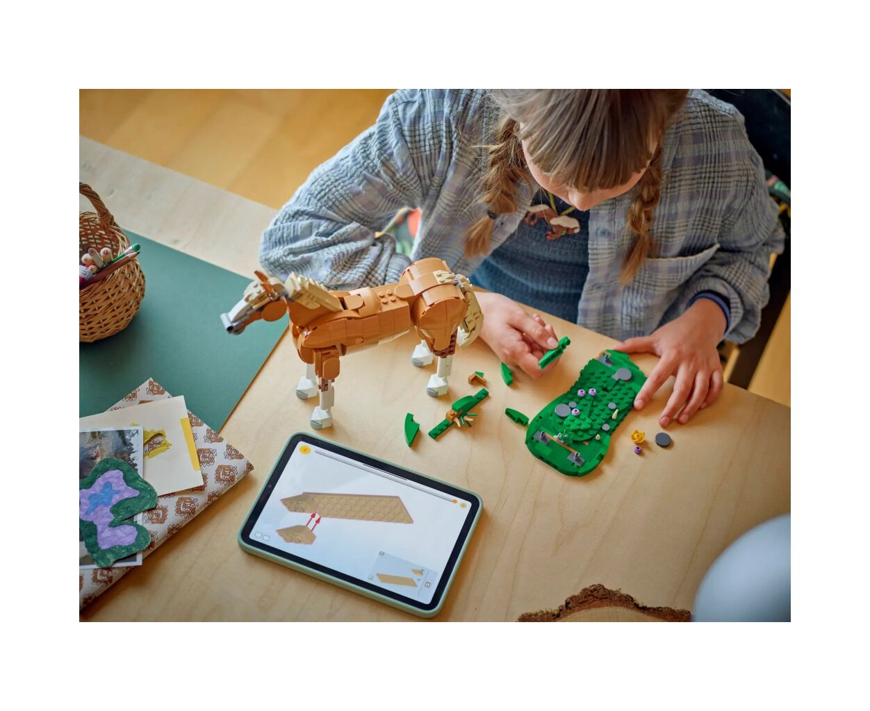 Конструктор LEGO Creator Прекрасный конь (31166) - это отличный выбор для детей от 9 лет, которые увлечены миром животных. Этот блочный конструктор открывает безграничное пространство для творчества благодаря своим уникальным возможностям. В наборе - 685 высококачественных пластиковых деталей, из которых можно собрать три разные модели: движущаяся игрушечная лошадь, медведь с водопадом или элегантный олень.