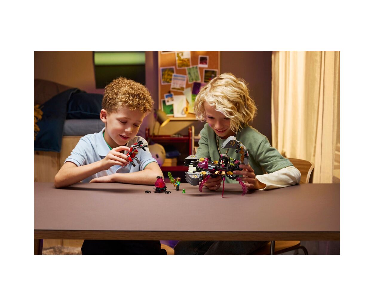 В комплекте есть минифигурки Матео, Купера и Арики, а также фигурка Зет-Блоба и 3 паука. Дополнительно, розовое алмазное яйцо, испорченное Императором кошмаров, скрывает сюрприз — оранжевое Сокровенное существо. Этот набор — не просто замечательное развлечение, но и оригинальный подарок на день рождения для детей от 7 лет. Качественные детали из прочного пластика гарантируют, что все приключения будут безопасными и продлятся долго.