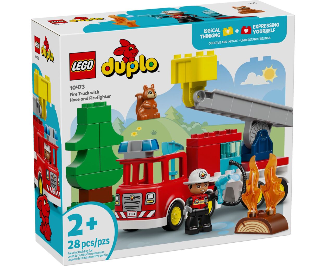 В серии LEGO DUPLO акцент сделан на ролевые игры, которые помогают детям изучать окружающий мир. Этот набор включает в себя 28 деталей, среди которых пожарная машина с настоящим гибким шлангом, дерево, а также фигурка белки, добавляя еще больше интерактивности в игру. Такая продуманная комбинация деталей позволяет малышам не только играть, но и обучаться важным социальным навыкам, таким как эмпатия и сострадание.