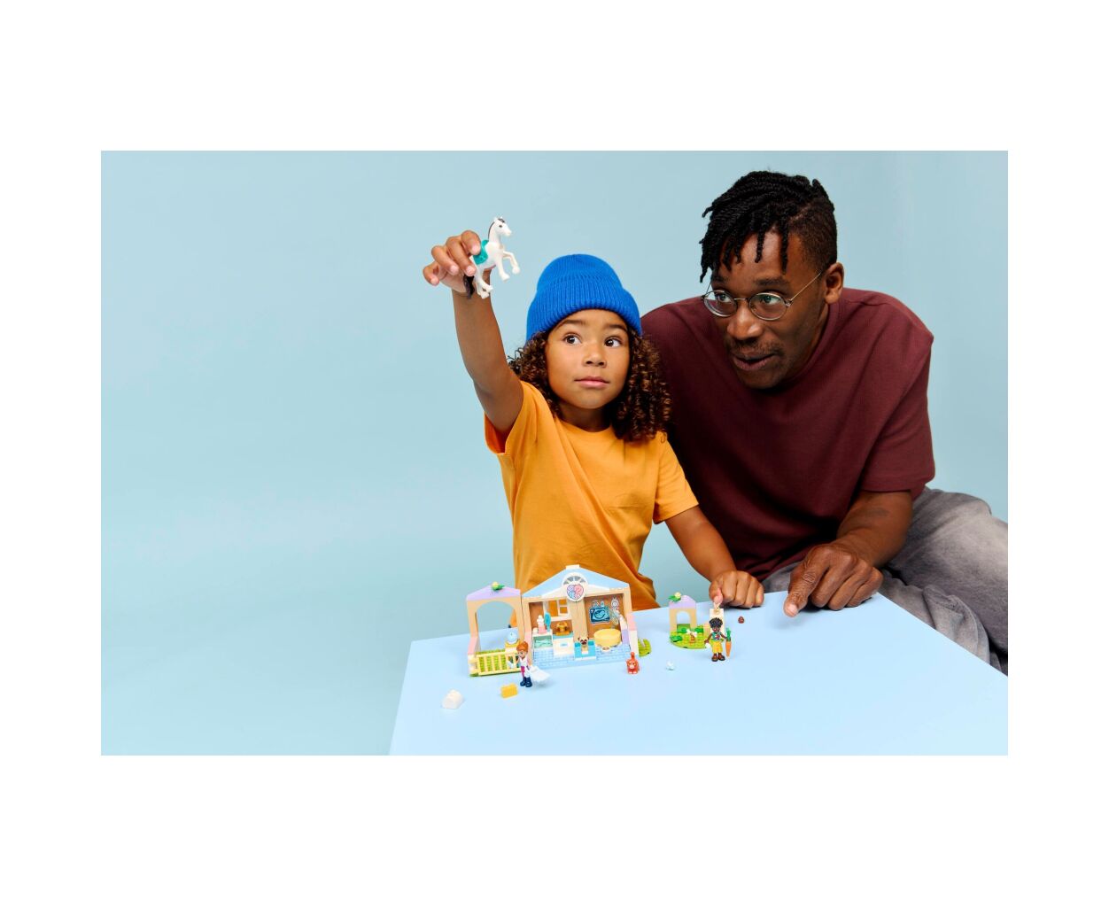 В ветеринарной клинике вас ждут миникуклы Лео и Валерия, а также фигурки лошади, собаки, кролика и двух кошек. Ребёнок научится заботиться о животных с помощью тематических аксессуаров, таких как шприц, термометр, блокнот и ручка. В конюшне предусмотрено всё необходимое: седло, сено, щётка, морковь и специальные кубики.