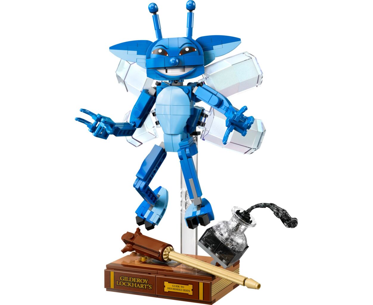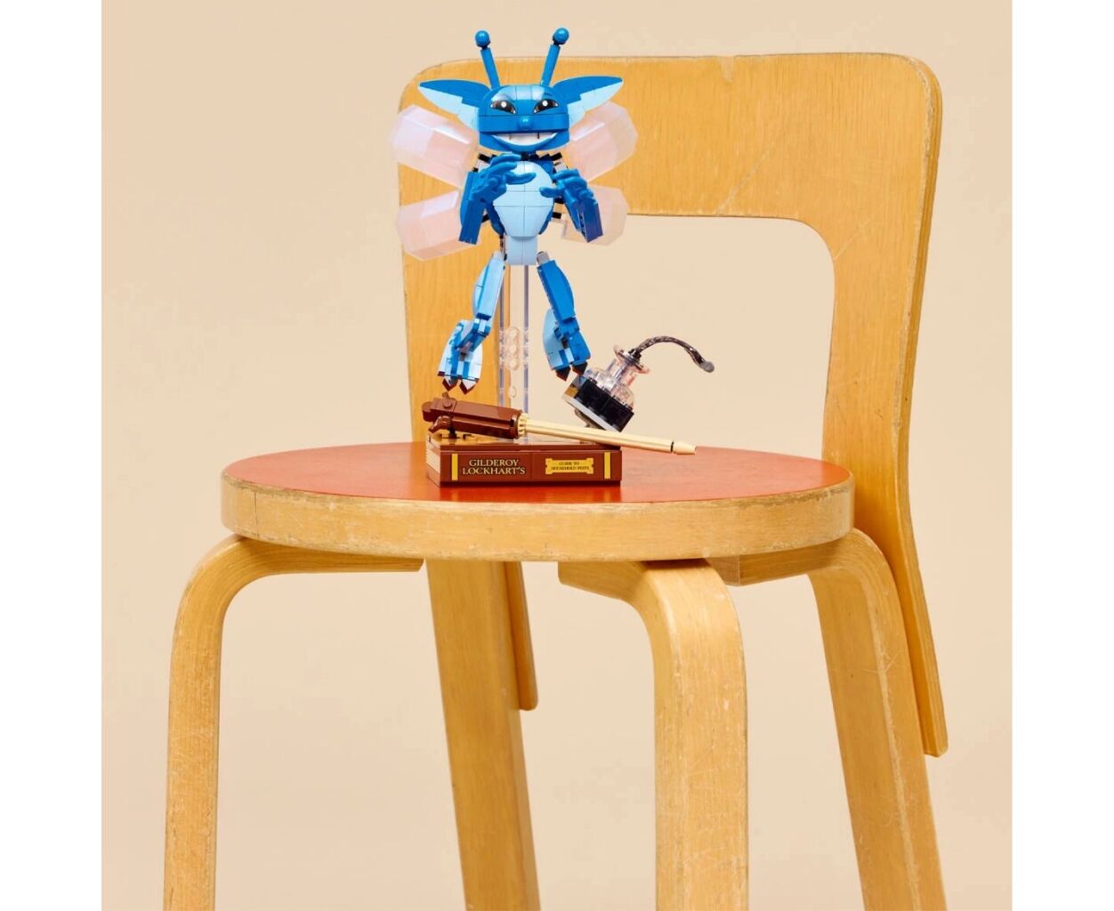 Особенность этого набора заключается в универсальности: установите пикси в позу для «полета» на прозрачной подставке или используйте его для захватывающей игры отдельно. Дополненные культовыми аксессуарами, такими как складная книга Гилдероя Локхарта и бутылка разливающихся чернил, эти детали придают реалистичность каждой сцене.