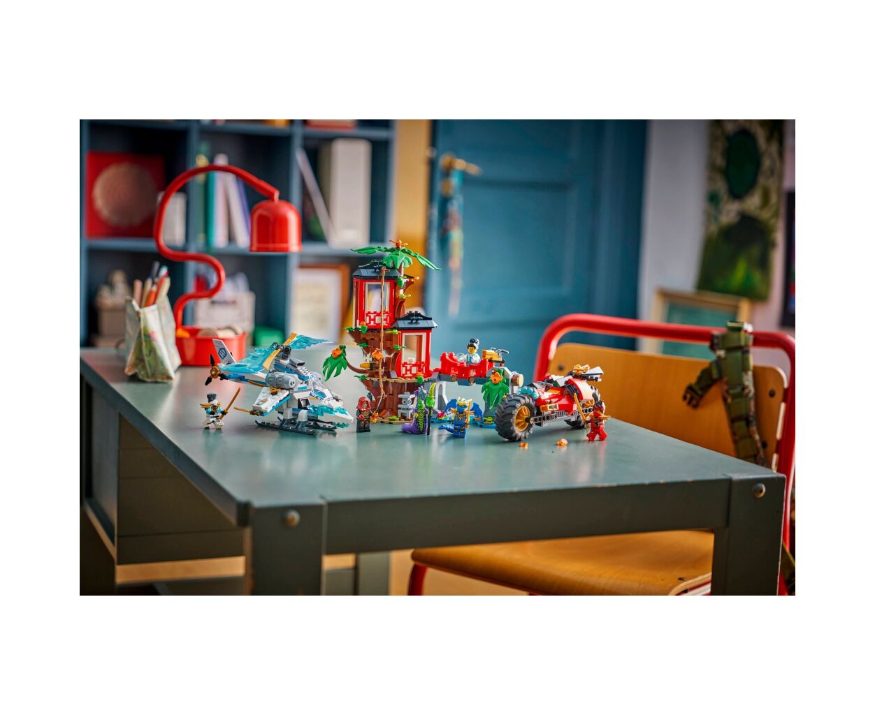 Описание Конструктор LEGO Ninjago Автомобильная битва ниндзя у дома на дереве (71857)