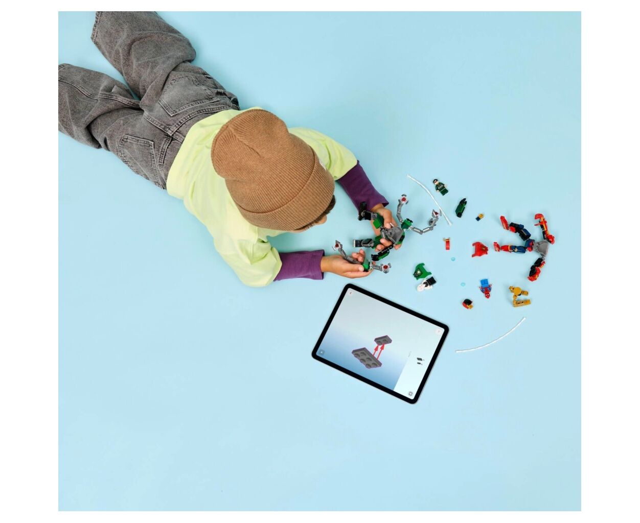 В то время как робот Доктора Осьминога завораживает своей способностью к движению благодаря четырём полностью маневренным щупальцам. Опция открытия кабины для минифигурок-пилотов обеспечивает гибкость и новые сценарии для игр. Кроме того, набор включает паутинные канаты, которые легко крепятся к роботам, добавляя правдоподобность сюжетным линиям.