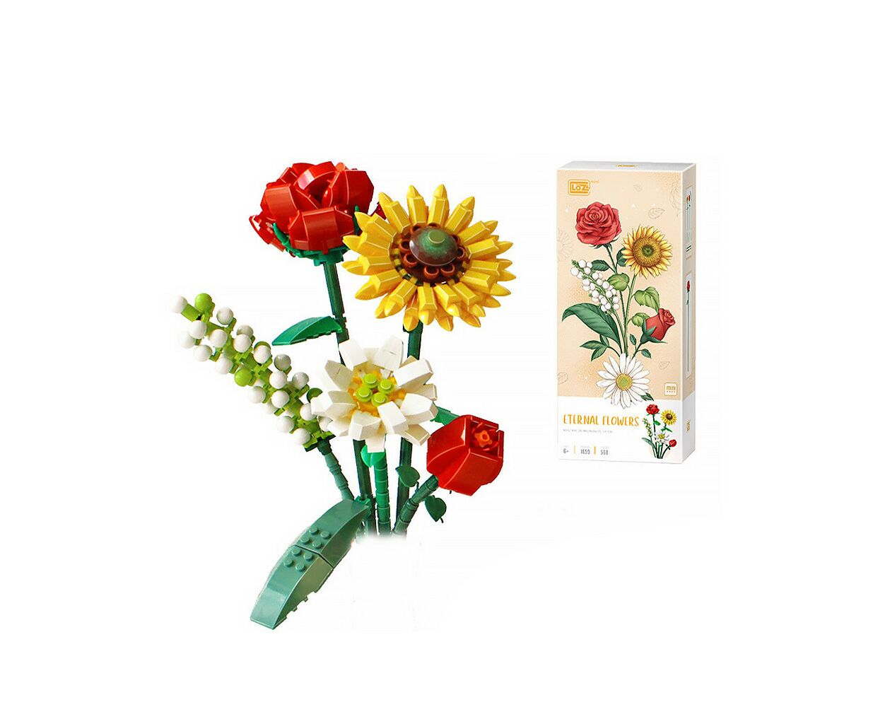 Конструктор LOZ mini Букет цветов 3 (1659) приглашает вас окунуться в волшебный мир творчества и изобретательности. Этот 3D-конструктор станет идеальным выбором для детей в возрасте от 6 лет, независимо от их предпочтений, так как подходит как для мальчиков, так и для девочек. Основная особенность этого конструктора — воплощение яркой цветочной тематики, в жанре цветы, что позволяет создать удивительный букет.