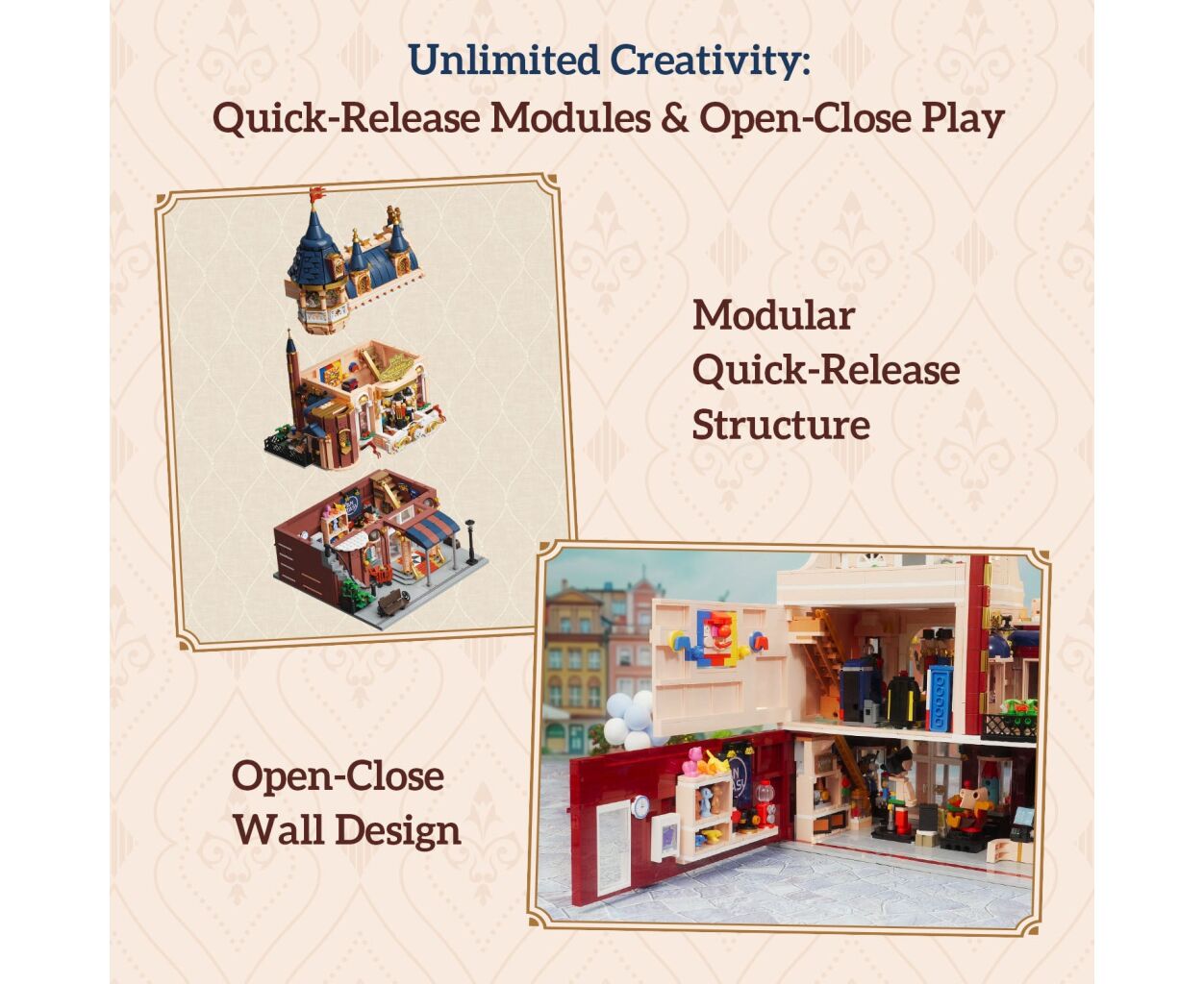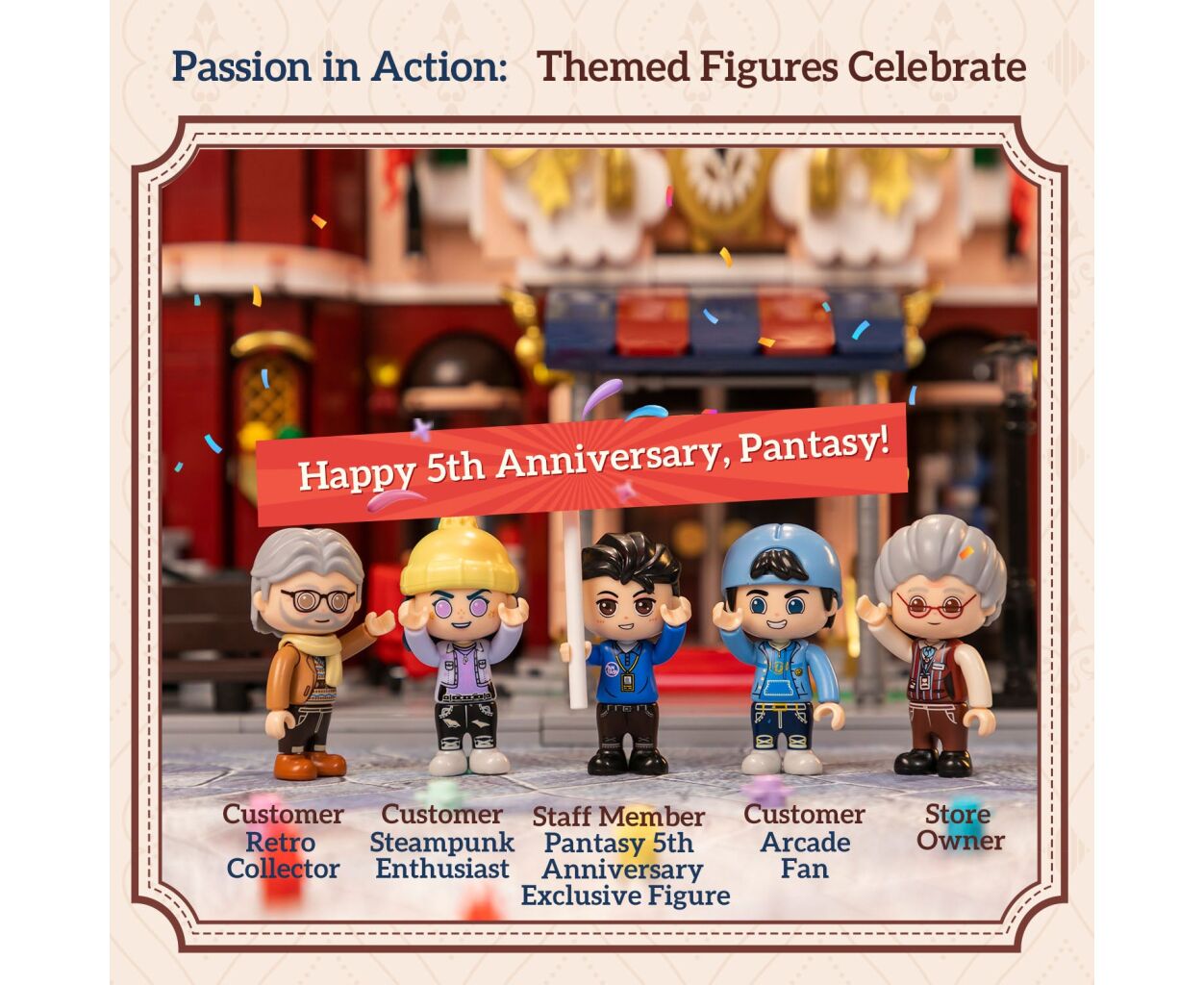 Набор отмечает пятилетие бренда, предлагая уникальную уличную сцену, которая объединяет «пасхальные яйца» из любимых наборов Pantasy. Конструктор включает четыре уникальные минифигурки с большими головами, которые добавляют нотку эксцентричности. Благодаря модульному дизайну с двумя основными сценами на трёх уровнях, набор легко собирать, а процесс приносит настоящее удовольствие.
