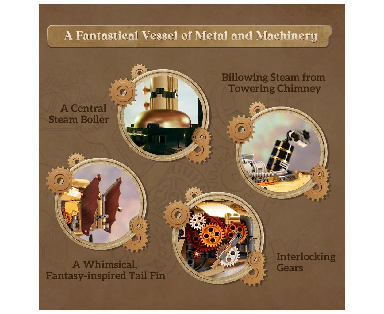 Конструктор совместим с другими популярными аналогами, что открывает безграничные горизонты для новых идей. Уникальная эстетика Steampunk декоративно украсит интерьер, став отличным акцентом в комнате или офисе и привлекая внимание гостей. Выберите качество, надежность и вдохновение вместе с Pantasy Original.
