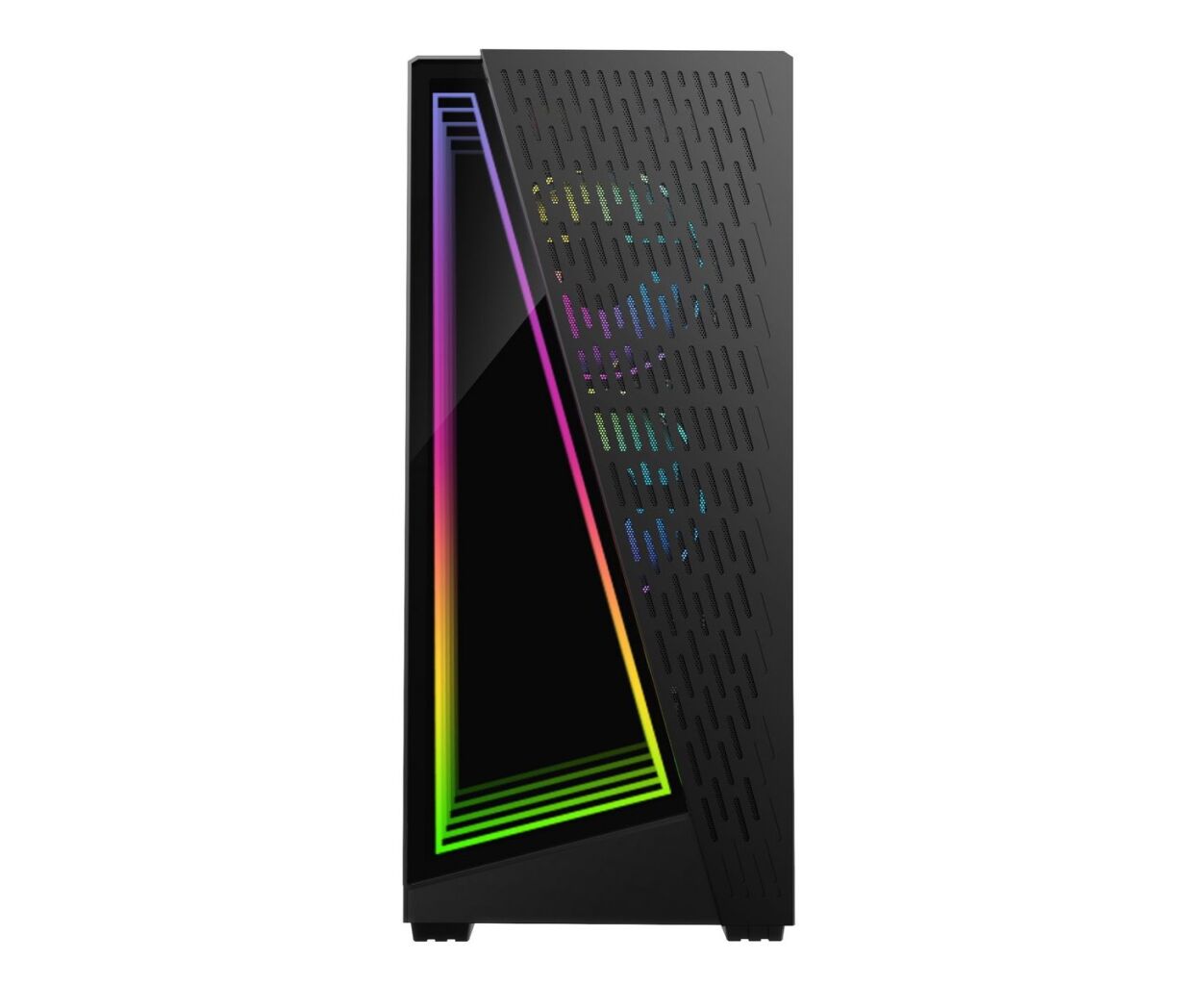 Корпус оснащён несколькими предустановленными вентиляторами с RGB-подсветкой, которые обеспечивают эффективное охлаждение системы. Также есть возможность установки дополнительных вентиляторов и других компонентов.