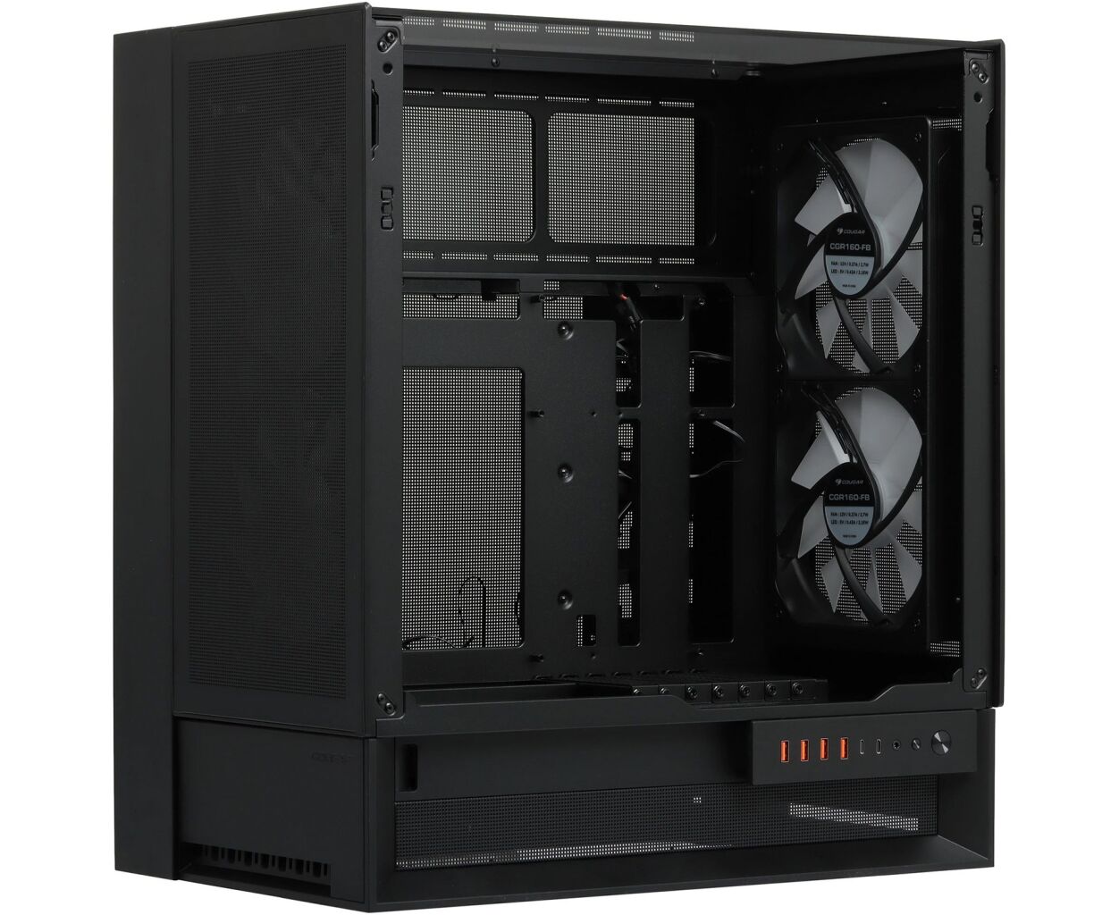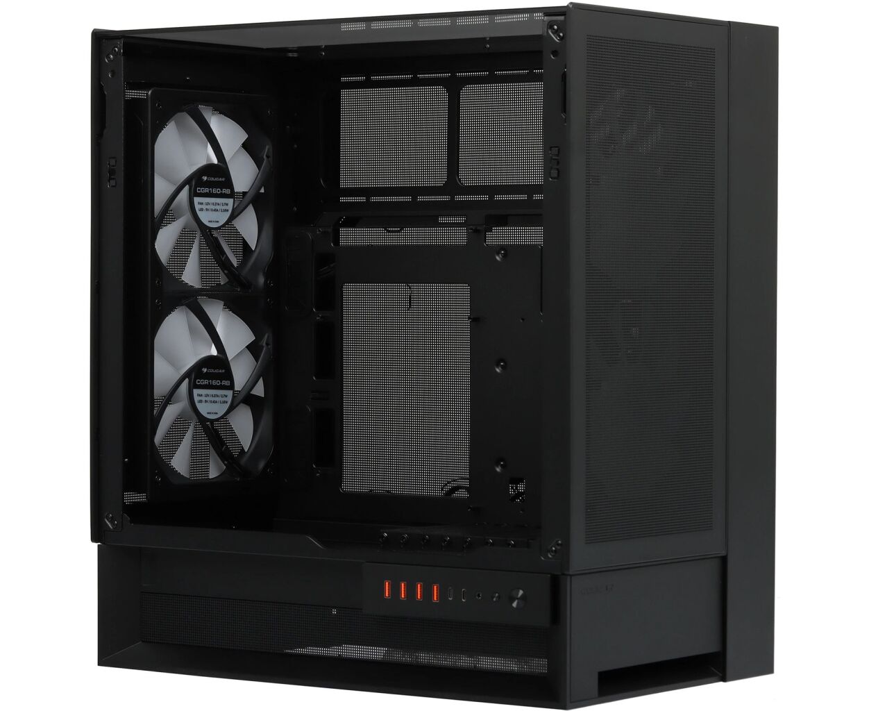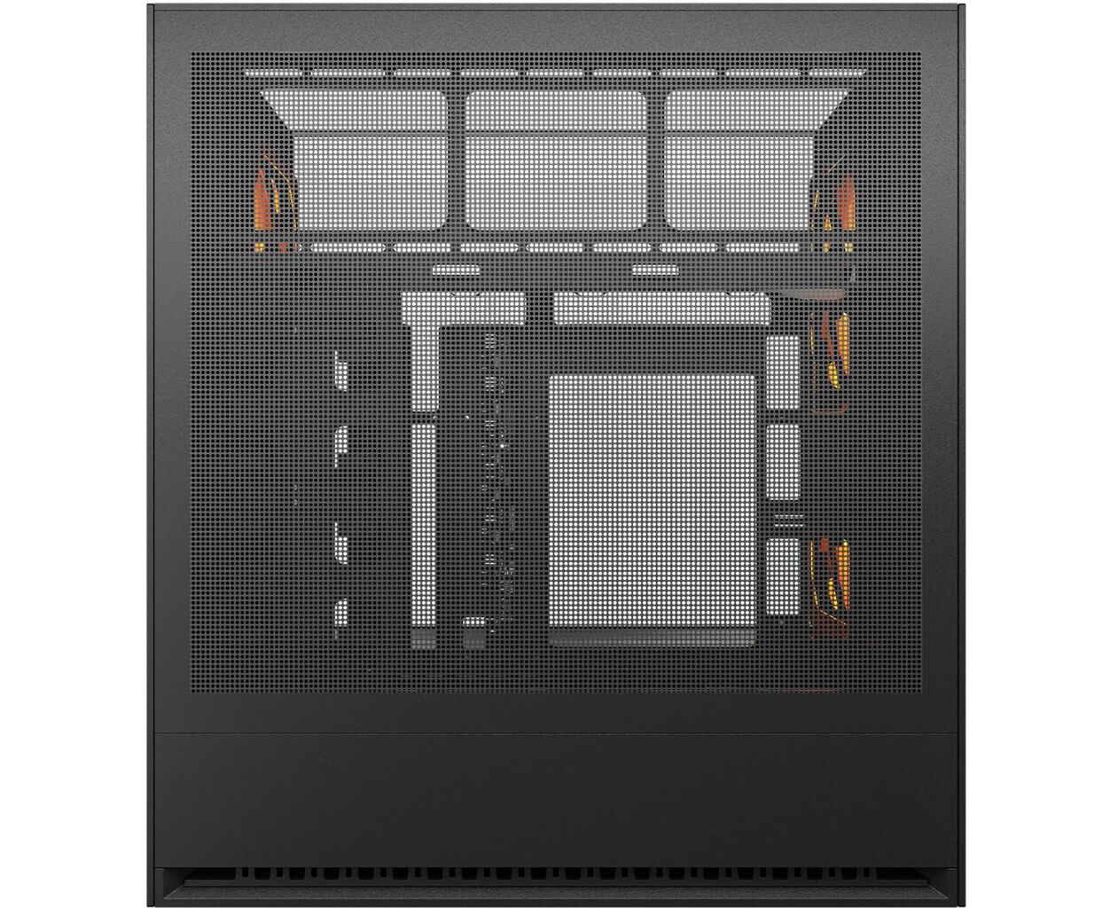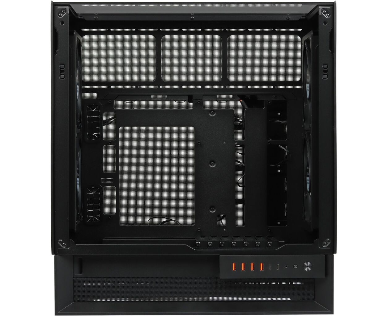 Идеально симметричный дизайн обеспечивает полную свободу ориентации. Благодаря двойным прозрачным стеклянным панелям, которые позволяют продемонстрировать вашу сборку с любого угла, OmnyX выглядит потрясающе, независимо от того, расположен он справа, слева или по центру. Большие вентиляторы.