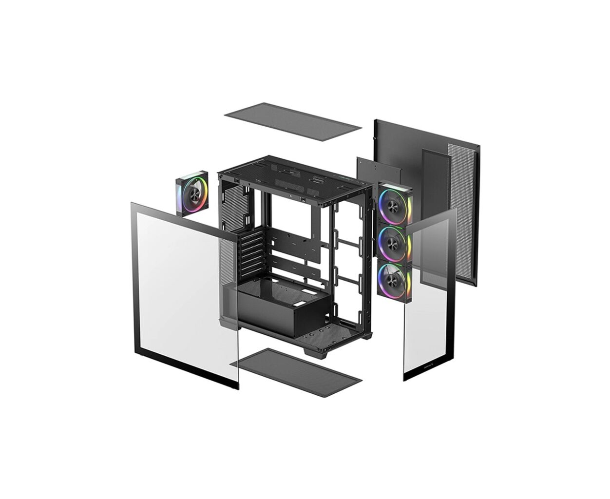 CG580 4F V2 – это изящный однокамерный корпус, конструкция которого позволяет выставлять напоказ самые распространенные компоненты. Этот корпус оснащен 4 вентиляторами ARGB и поддерживает радиаторы длиной 360 мм и различные конфигурации вентиляторов, сочетая стильный дизайн с исключительной функциональностью. Благодаря конструкции без передней стойки, а также стеклянным боковым и передним панелям с обзором 270° владельцы могут полноценно наслаждаться внешним видом своей системы.