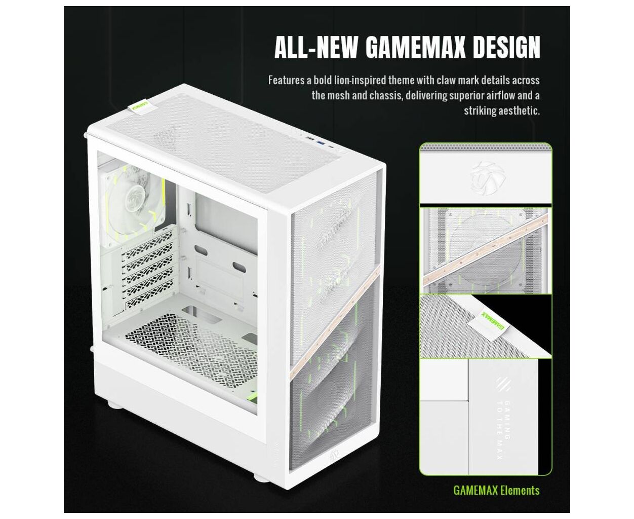Корпус для ПК Gamemax AERIS 330 MW — це не просто стандартний корпус, а изысканное решение для энтузиастов мультимедийных систем. Отличаясь уникальным дизайном, вдохновлённым образами льва, он привлекает внимание деталями в виде когтей, подчеркнутыми на сетчатой панели и боковых поверхностях. Этот корпус, помимо эстетической привлекательности, гарантирует оптимальный воздушный поток, что чрезвычайно важно для поддержания эффективного охлаждения компонентов.