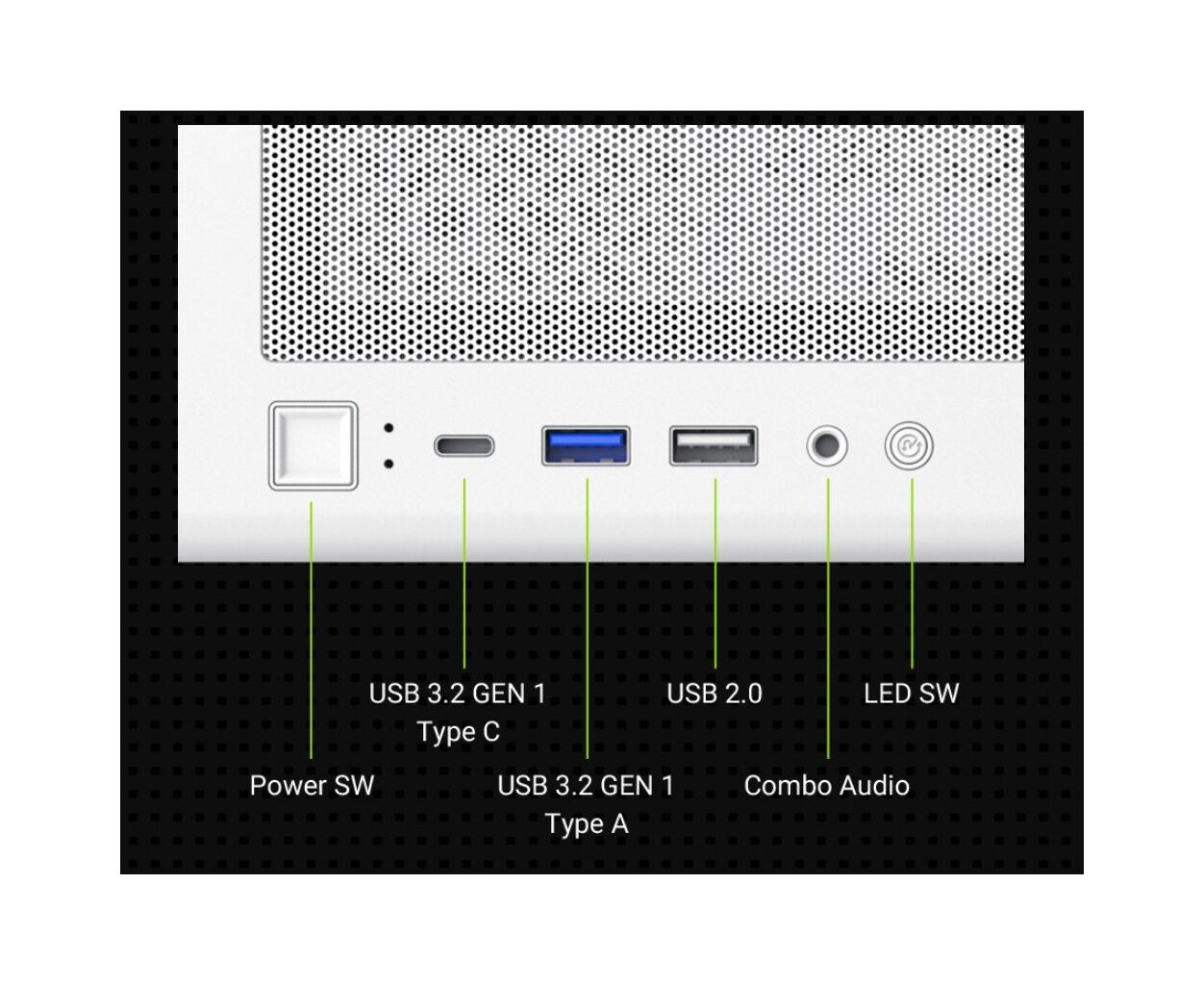 На современной передней панели ввода/вывода представлен широкий спектр интерфейсов, включающих порт USB Type-C, USB 3.2, USB 2.0, а также комбинированные аудиоразъёмы. Это позволяет беспрепятственно подключать необходимые периферийные устройства и аксессуары, не беспокоясь о скорости передачи данных или качестве аудиосигнала.