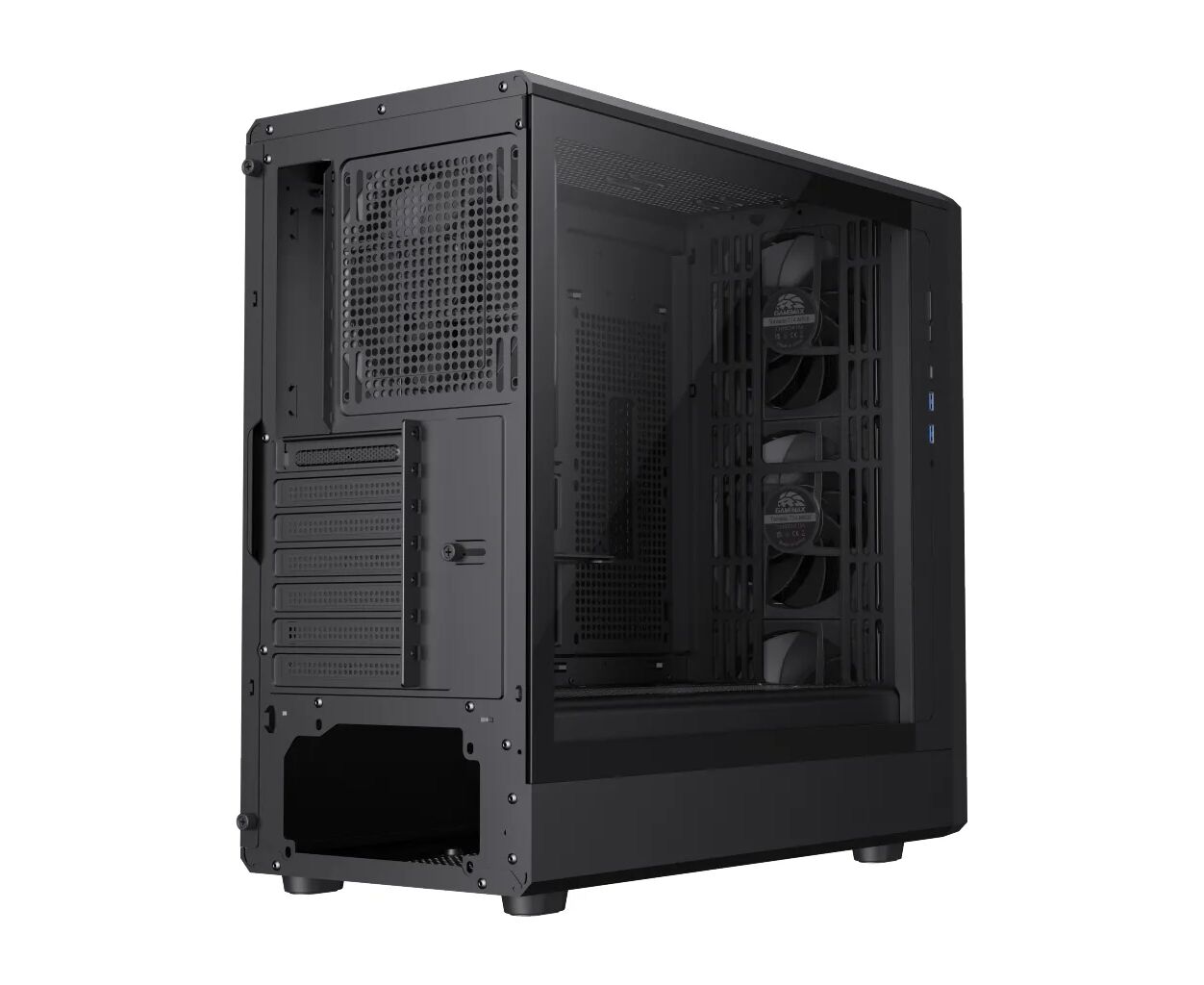 Gamemax CLAW 460 BK имеет просторное внутреннее пространство, позволяющее разместить до двух 3.5-дюймовых и двух 2.5-дюймовых накопителей, а также поддерживает установку длинных видеокарт до 420 мм и процессорных кулеров до 175 мм в высоту. Такая гибкость в компоновке делает этот корпус универсальным выбором для разнообразных конфигураций, от бюджетных рабочих станций до высокопроизводительных игровых систем.