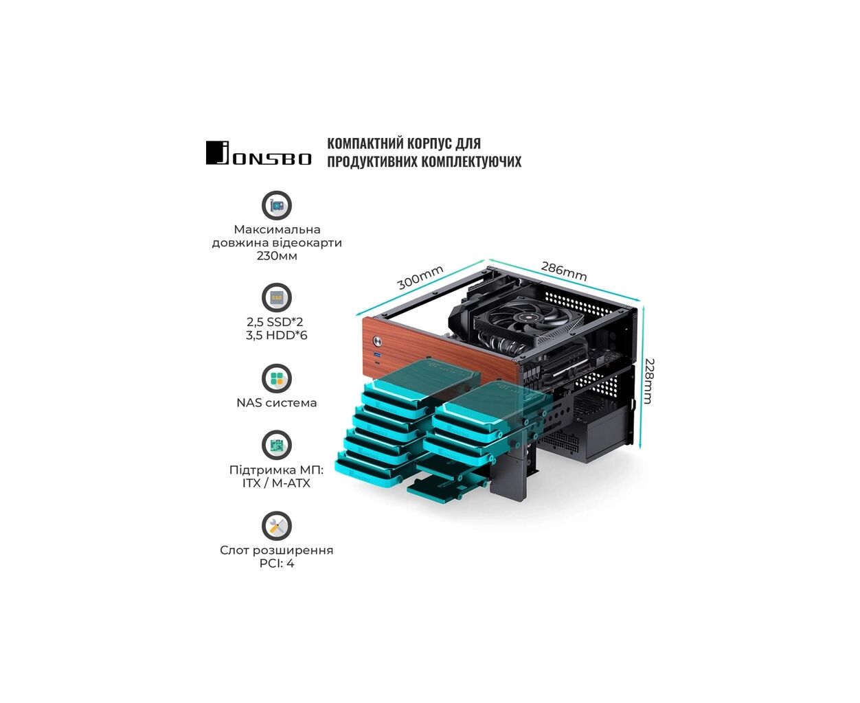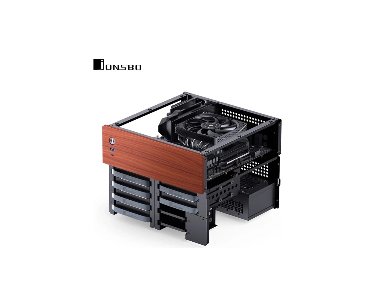 Корпус Jonsbo N4 Black представляет собой компактное NAS-решение в формате Micro-ATX. Этот стильный корпус выполнен из сочетания стали и натурального дерева, что придает ему элегантный внешний вид. Корпус поддерживает установку материнских плат формата ITX и M-ATX, а также оснащен четырьмя слотами для расширения и поддерживает карты длиной до 230 мм.