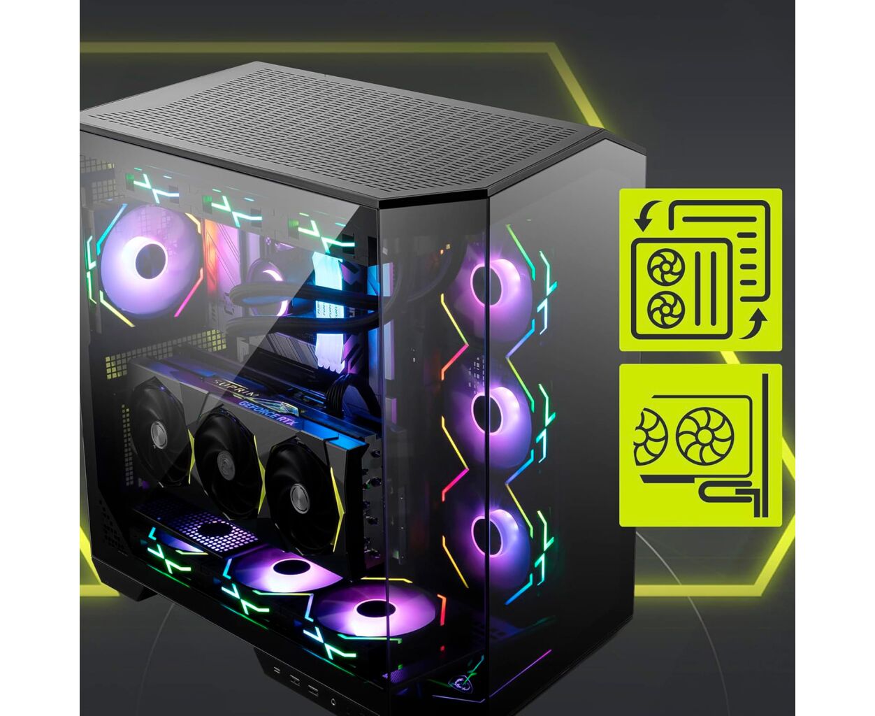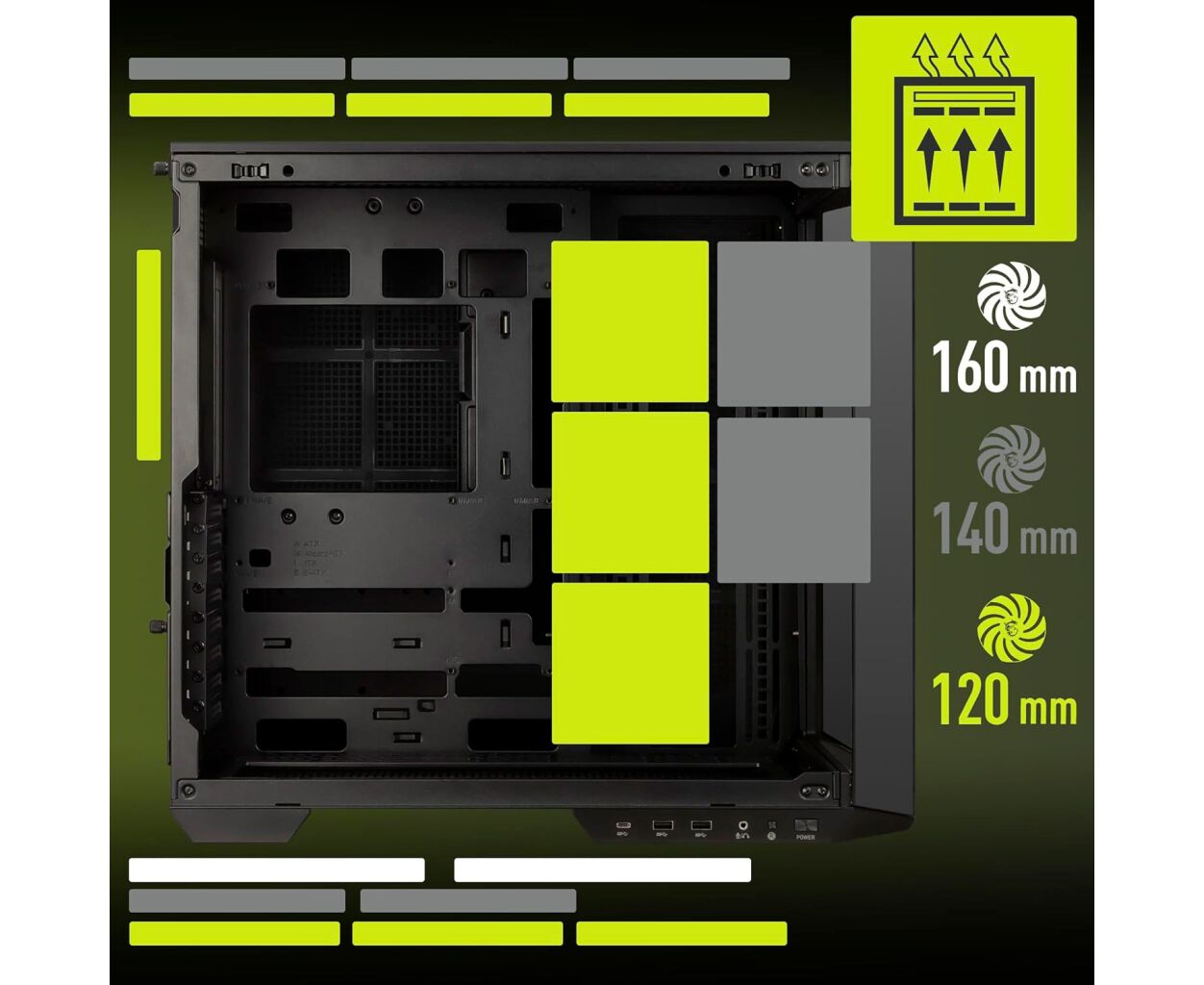 Мультимедийные, Miditower, ATX, Micro - ATX, Mini - ITX, Слотов расширения - 8, Вентиляторы - 2 х 120 мм, GPU - до 400 мм, 518.7 x 290 x 482 мм, 11.3 кг, черный