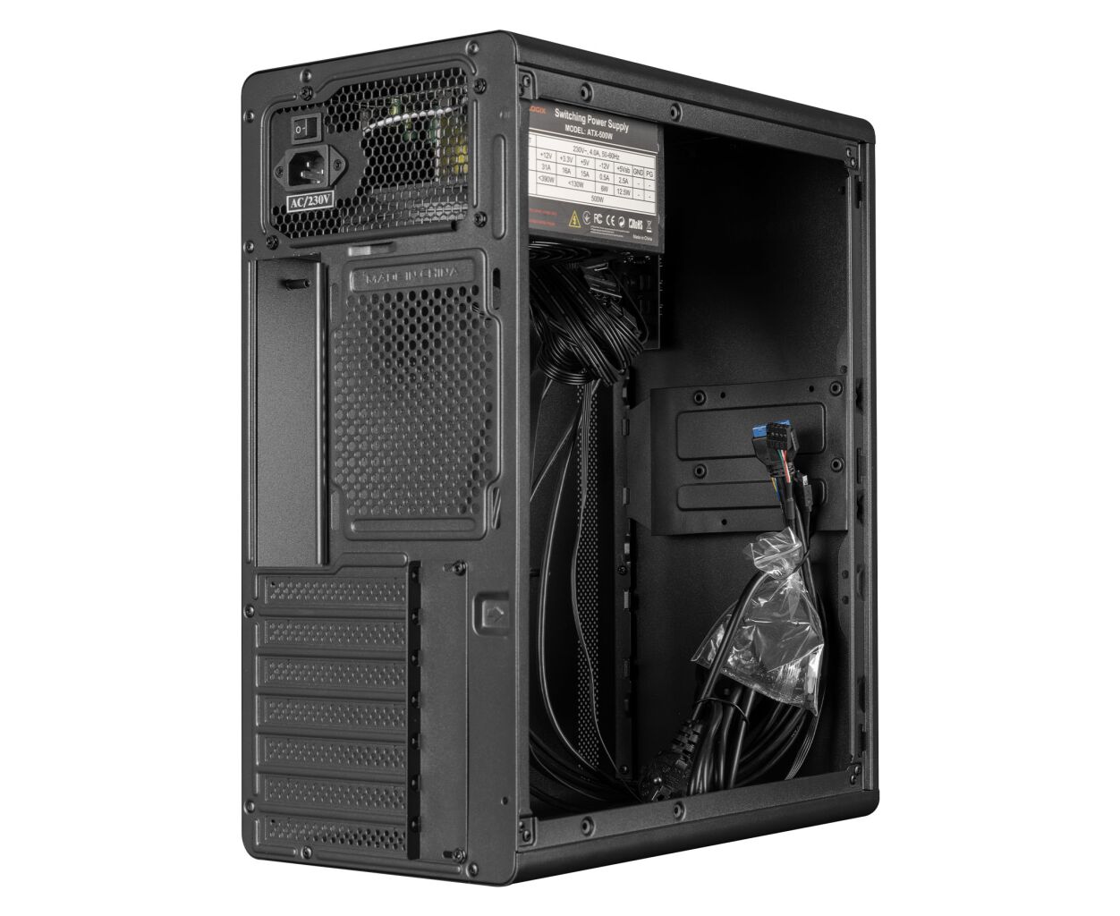 Miditower, ITX, ATX, Micro - ATX, PSU - 500 Вт, Слотов расширения - 6, Дополнительно - Back 1x12 см, GPU - 320 мм, CPU - 160 мм, 4.7 кг, черный