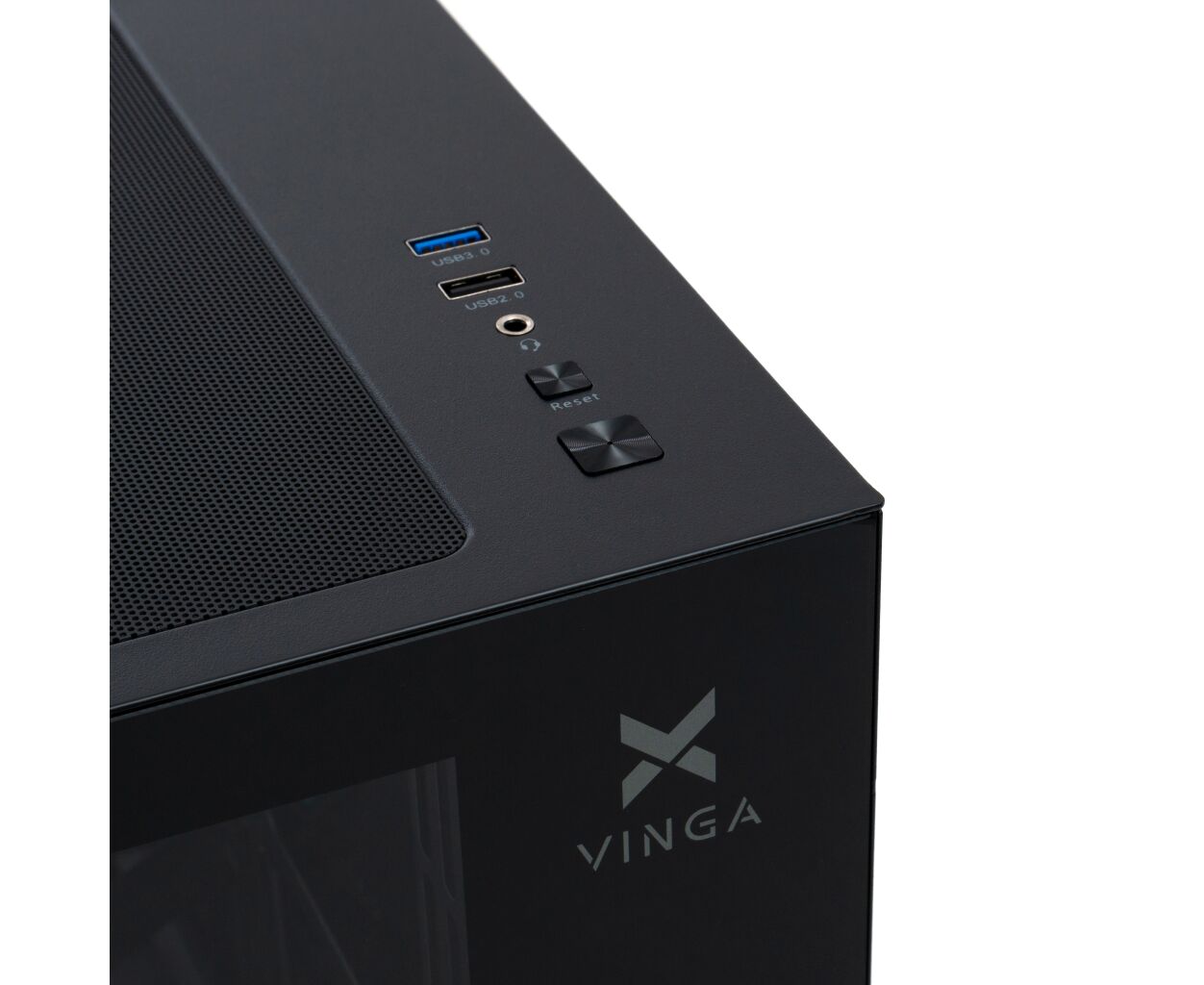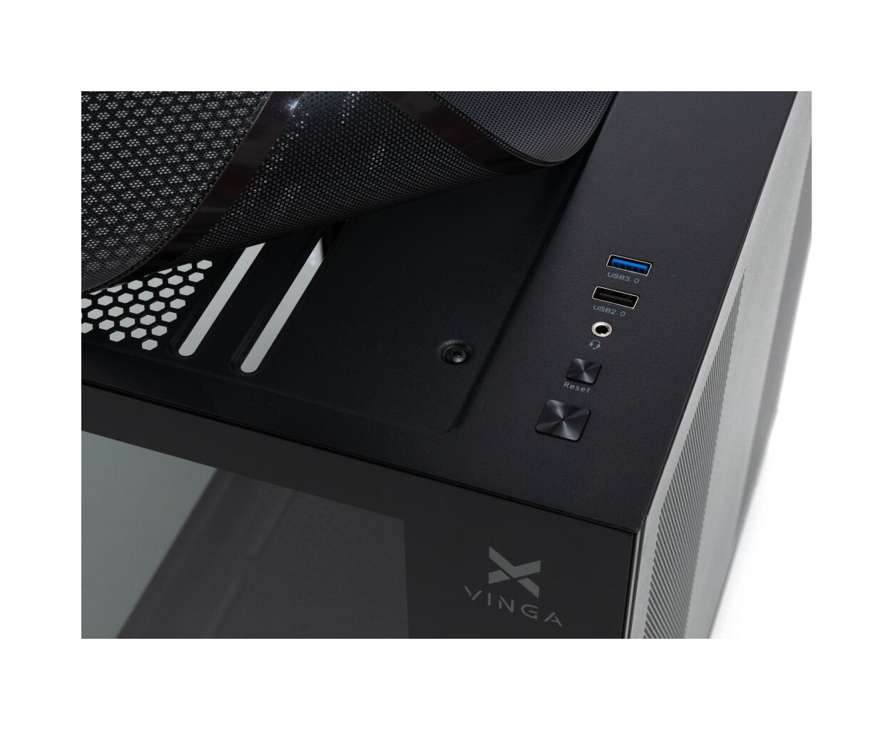 Эргономичность — еще одно преимущество Vinga Bulldog. Корпус оснащен внешними разъемами для удобства подключения периферии: один порт USB 3.0, два порта USB 2.0 и аудиоразъемы. Особые моменты, такие как прозрачная передняя панель и прорезиненные ножки, добавляют не только эстетичности, но и функциональной устойчивости.