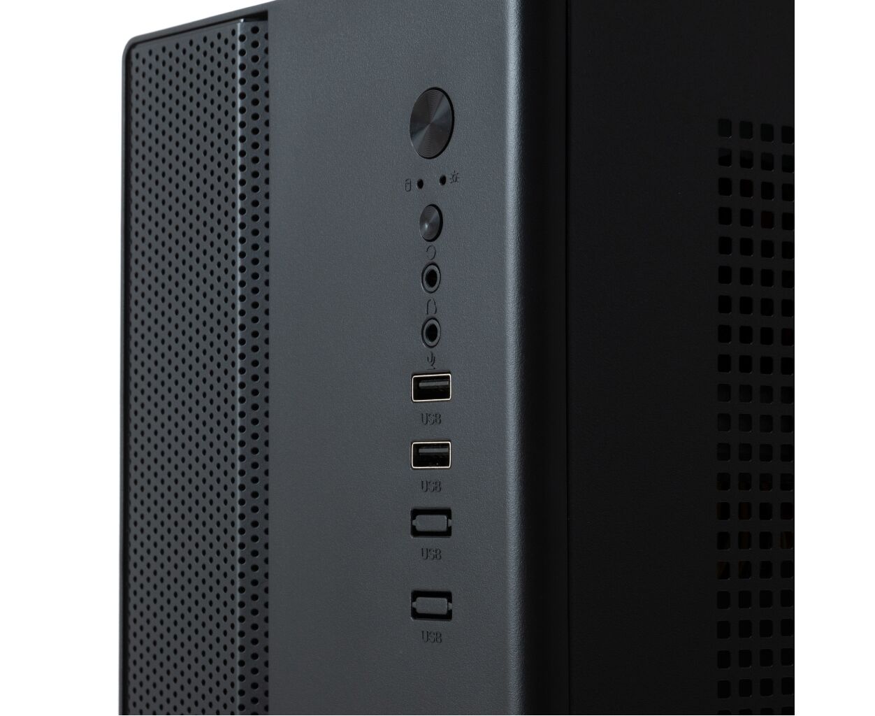 Для подключения внешних устройств корпус оборудован удобными внешними разъемами, включая 2 x USB 2.0 и 2 x Audio порта. Это позволяет быстро подключать периферийные устройства, такие как мыши, клавиатуры или наушники, без лишних усилий.