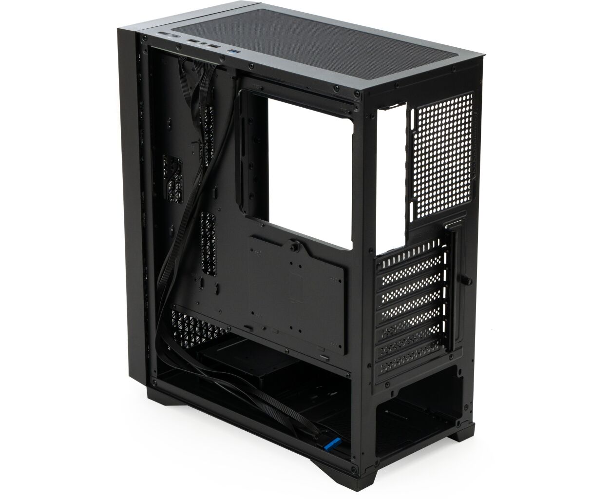 Одним из особых преимуществ этого корпуса является его универсальность в возможностях для апгрейда. Для размещения дисковых накопителей предусмотрено два внутренних отсека формата 3.5" и пять отсеков формата 2.5". Это предоставляет вам широкий выбор в установке как SSD, так и HDD, что позволяет обеспечить высокоскоростное хранение данных и оптимальную производительность вашей системы.