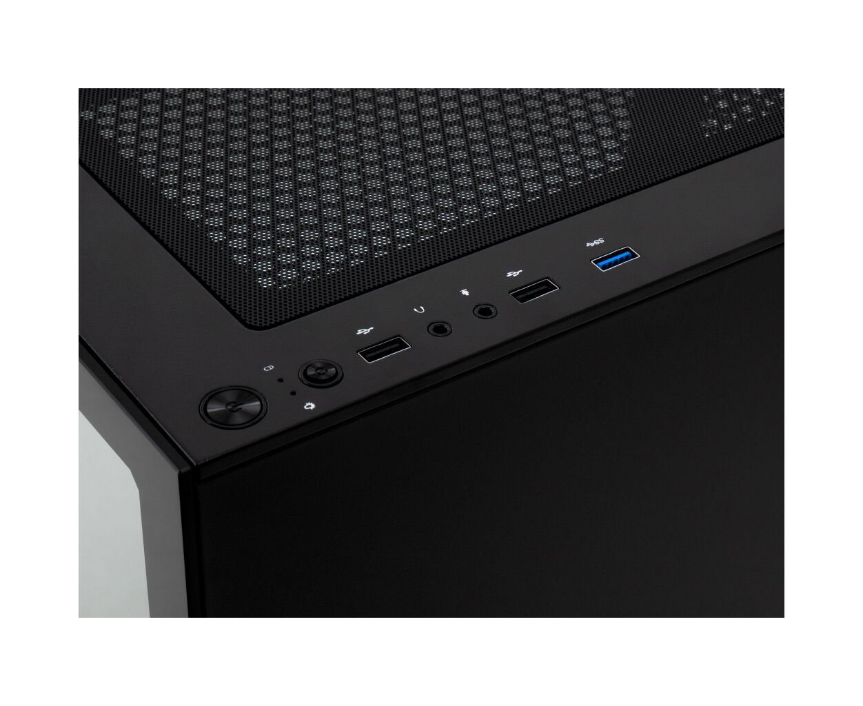 Функциональность корпуса дополняется множеством внешних разъемов, среди которых присутствуют 1 x USB 3.0 и 2 x USB 2.0, что позволяет подключить многочисленные периферийные устройства. Аудиовыходы обеспечивают легкий доступ к подключению ваших любимых гарнитур и аудиосистем.