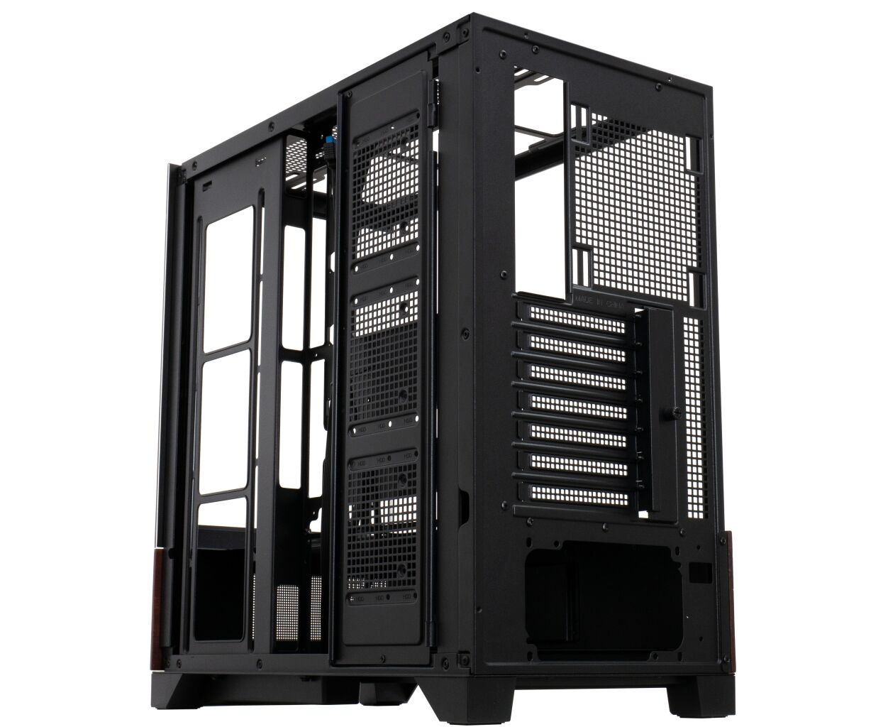 Корпус оснащен нижним расположением блока питания, что дополнительно улучшает вентиляцию и охлаждение системы. Для хранения данных предусмотрено два внутренних отсека 3.5" и три внутренних отсека 2.5", которые отлично подойдут для установки жестких дисков и SSD. Вместе с семью слотами расширения, это обеспечивает гибкость в выборе дополнительных компонентов.