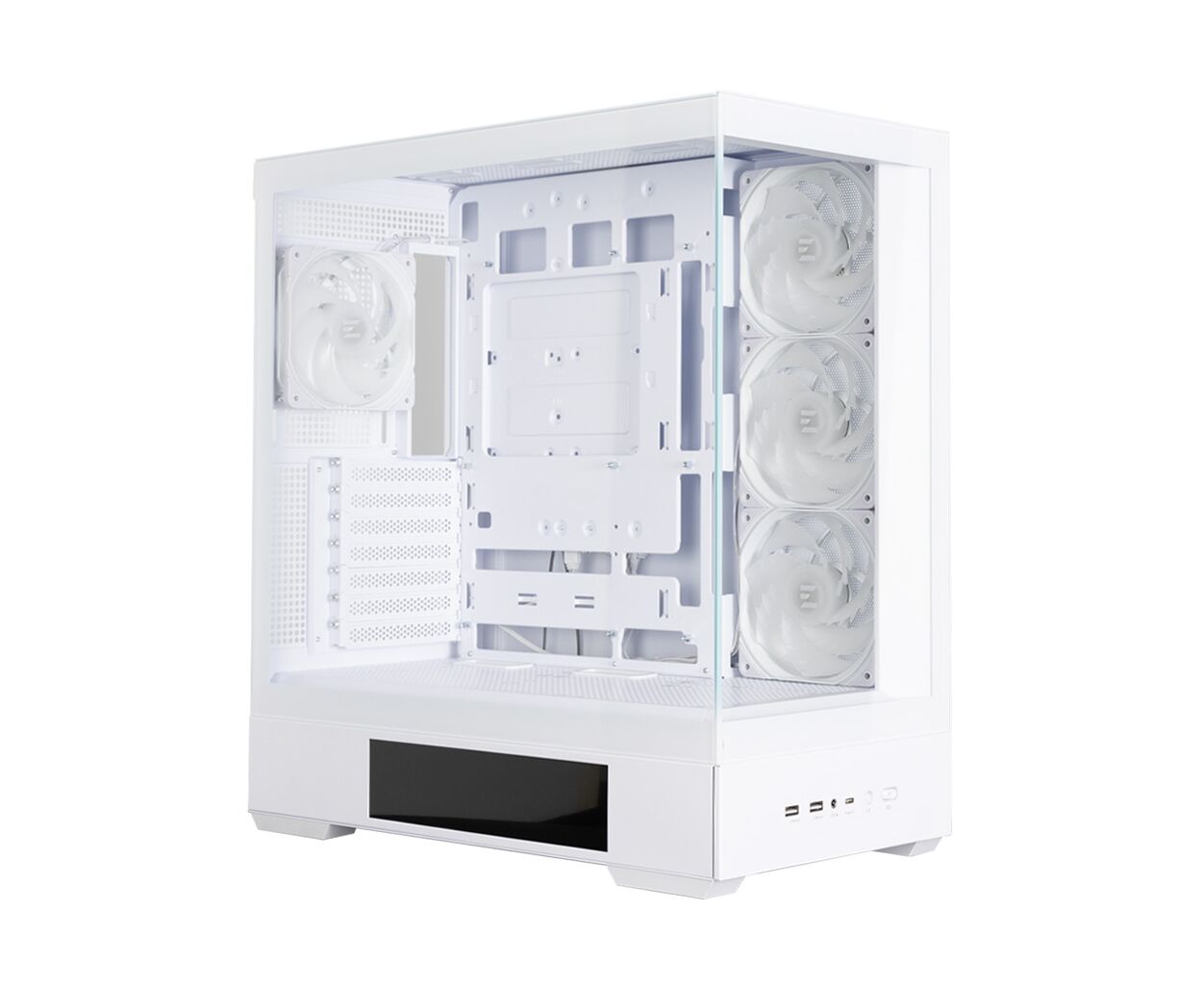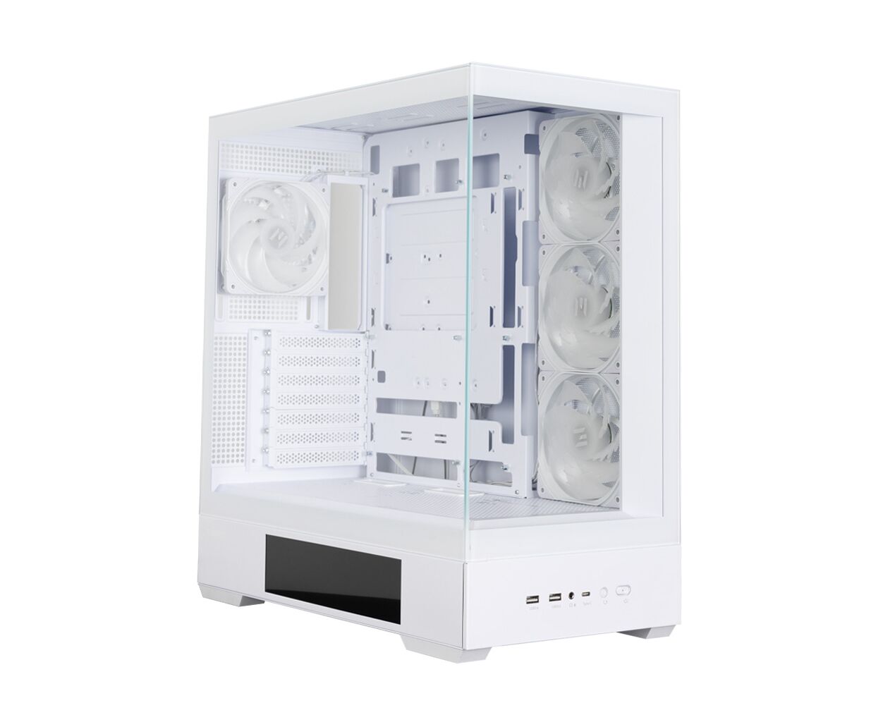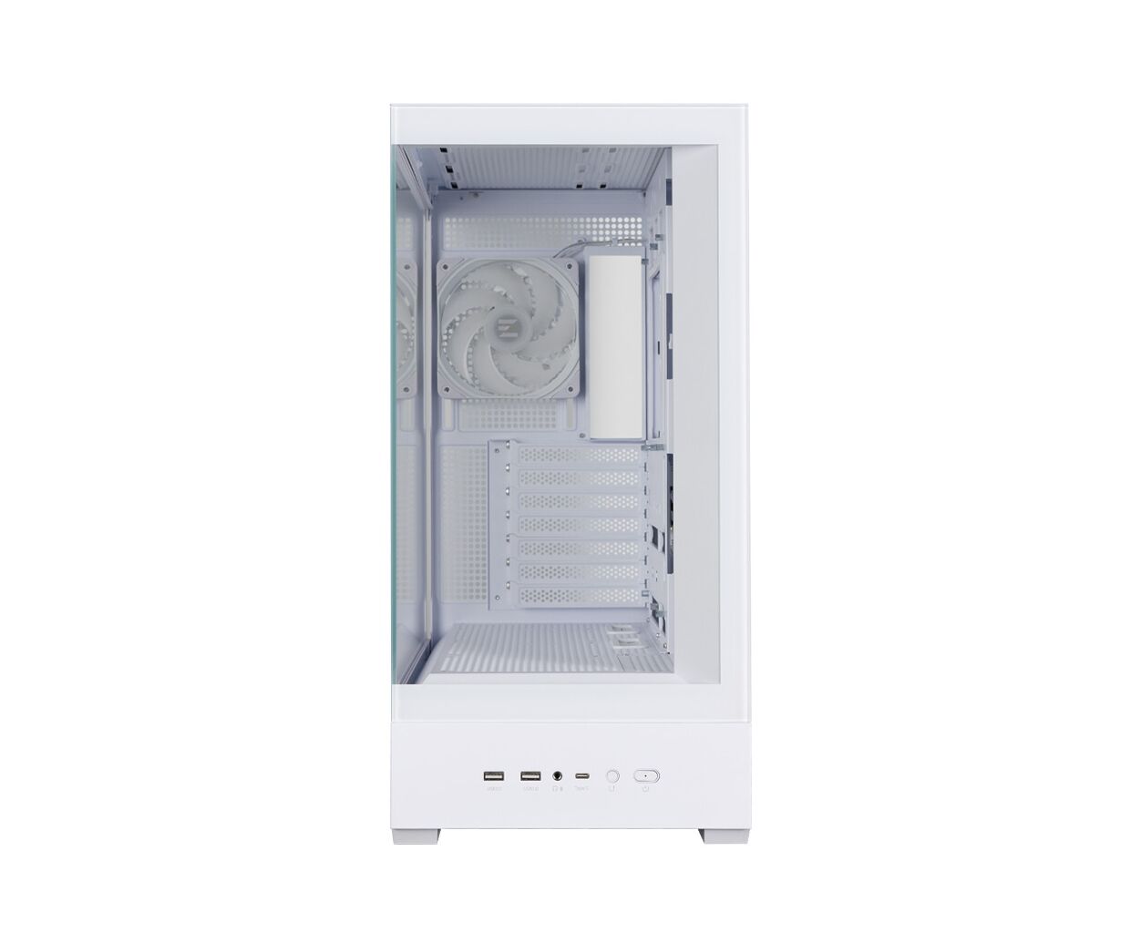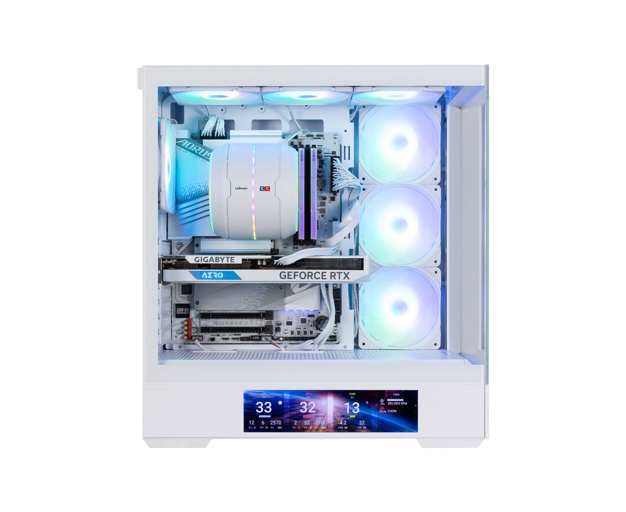 Панорамный корпус Zalman P40 DS WHITE с 9,1 дюймовым дисплеем для современной домашней или игровой станции, совместим с актуальными компонентами и адаптирован для BTF материнских плат. Передняя и боковая панели из закаленного стекла. Обеспечен активный обдув компонентов за счет перфорации металлической поверхности панелей корпуса. Продумана защита от пыли. В комплекте 4 х 120мм ARGB встроенных вентиляторов, концентратор и держатель для видеоадаптера. Вентиляторы на боковой панели – реверсные: обеспечивают приток воздуха извне. Вентилятор на задней панели работает на выдув. Дополнительна опция – дисплей с разрешением 1920х462 на боковой панели, который демонстрирует в реальном времени информацию о процессоре, видеоадаптере, памяти и вентиляторах корпуса. Корпус укомплектован всеми необходимыми деталями для сборки и дальнейшей эксплуатации, в наличии стандартные современные актуальные интерфейсы, разъёмы, а также программное обеспечение, которое возможно загрузить з официального сайта производителя.