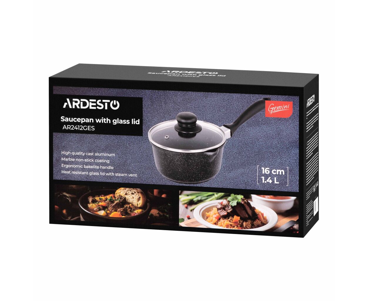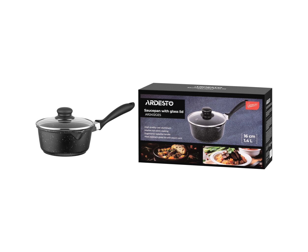 Характеристики Ковш Ardesto Gemini Anzio, 1.4л, алюміній, чорний (AR2412GES)