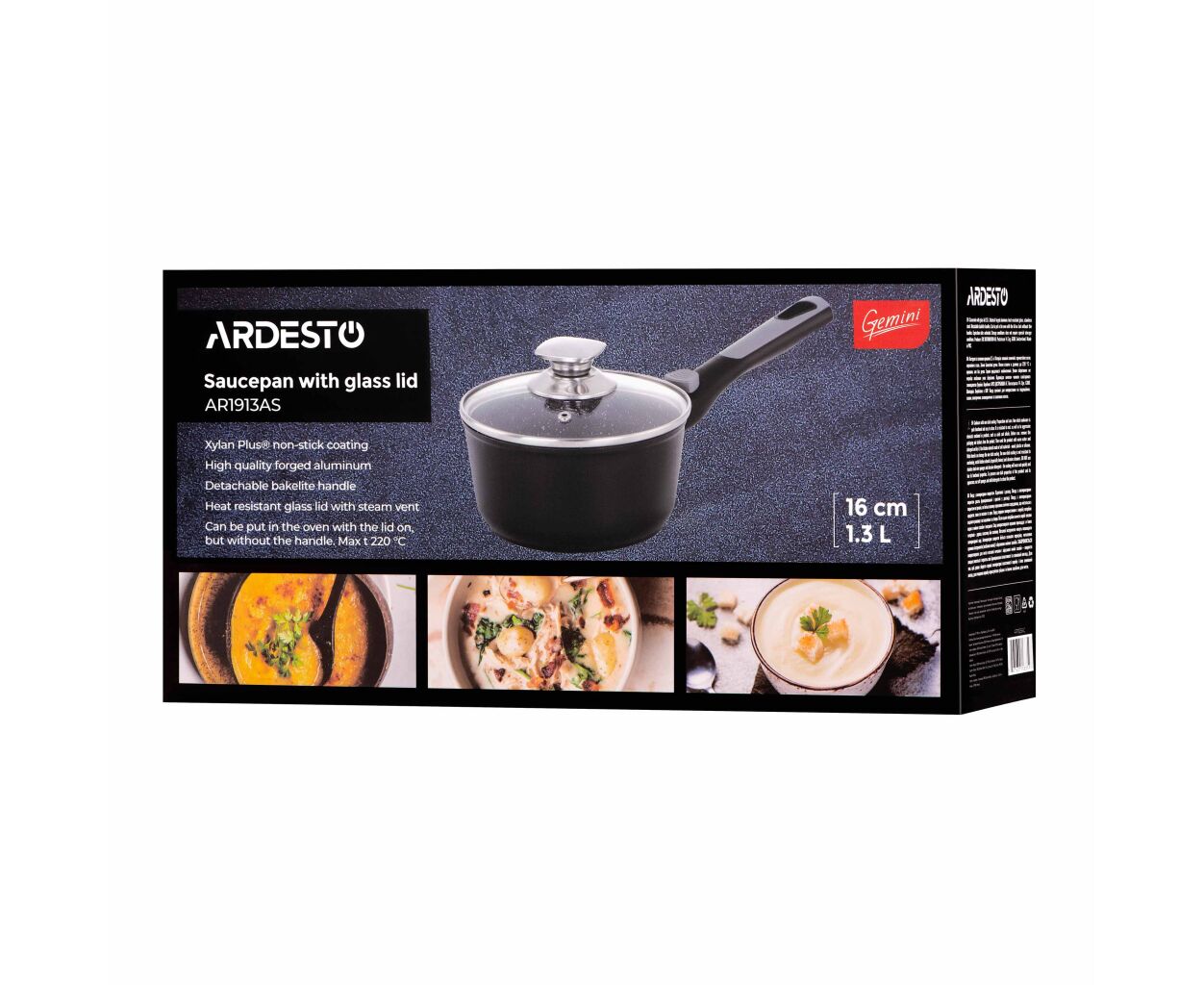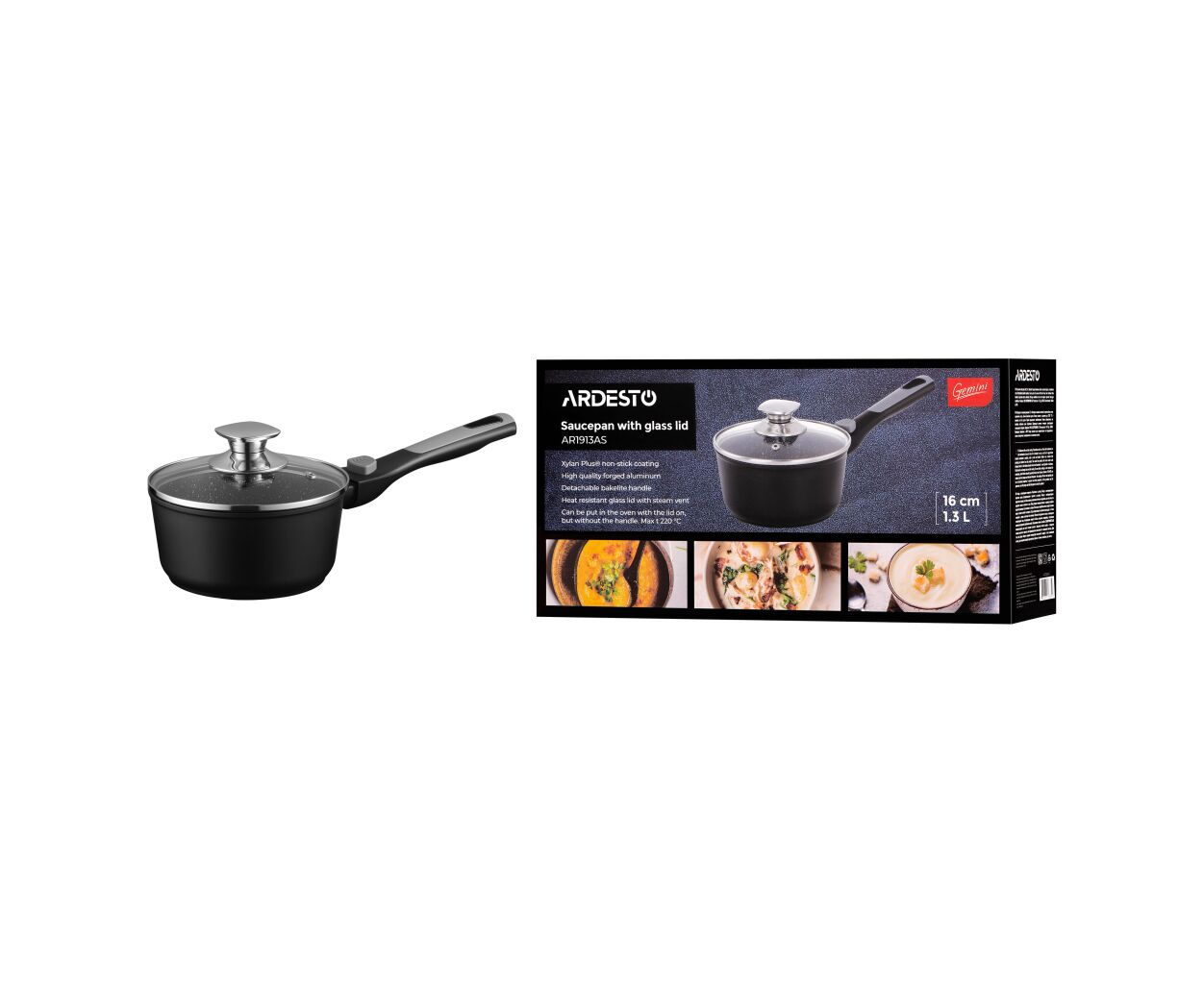 Описание Ковш Ardesto Gemini Bari, 1.3л, алюміній, чорний (AR1913AS)