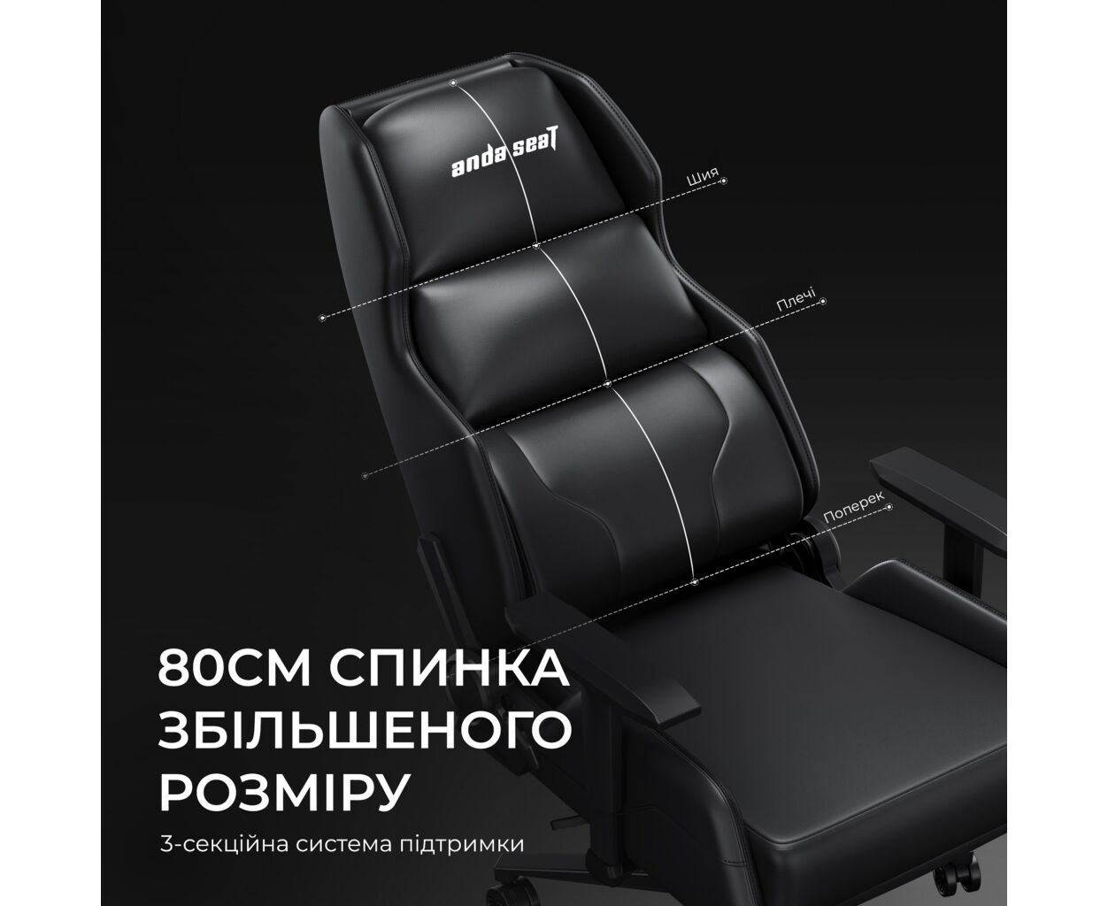Это кресло имеет экстра-высокую спинку высотой 135 см с интегрированными подушками, наполненными экстра-мягким пеноматериалом. Такая конструкция не только обеспечивает максимальный комфорт, но и отмечена тестами на 100 000 циклов, чтобы гарантировать длительный срок службы. Система поддержки состоит из трёх секций, которые заботятся о вашей пояснице, плечах и голове, позволяя полностью сосредоточиться на игре или отдыхе.