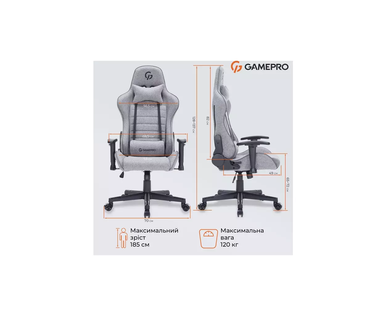 Характеристики Кресло игровое GamePro GC575FG Fabric Size L Gray (GC575FG)