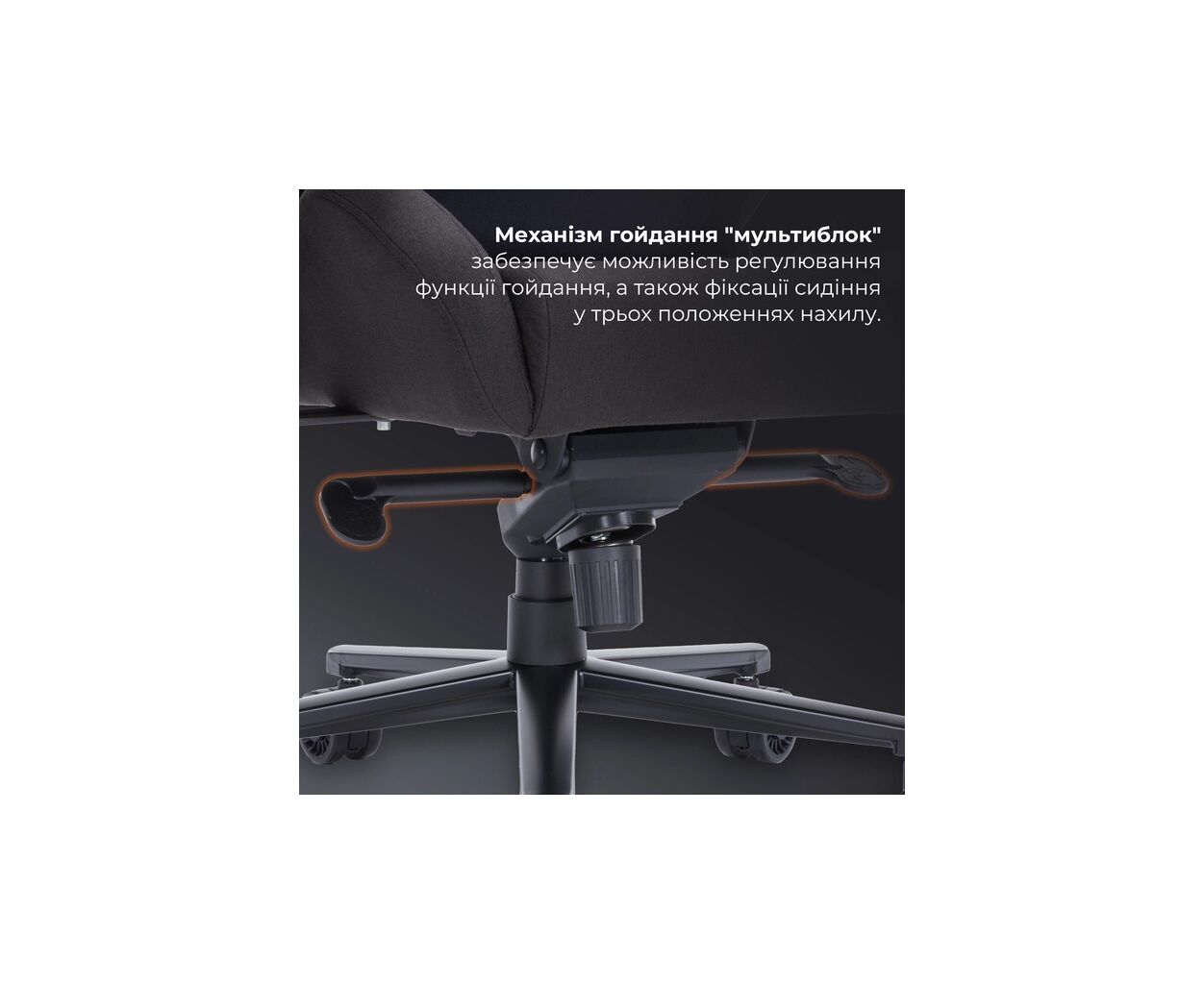 Механизм Multi-block предлагает широкие возможности настройки. Спинка кресла может наклоняться до 160 градусов, позволяя вам находить идеальное положение как для отдыха, так и для концентрации. Механизм качания с фиксацией в трех положениях дает дополнительную гибкость и свободу движений. Плавная регулировка высоты сиденья в пределах 49-55 см благодаря высококлассному газ-лифту позволяет подстроиться под пользователей с максимальным ростом до 210 см.