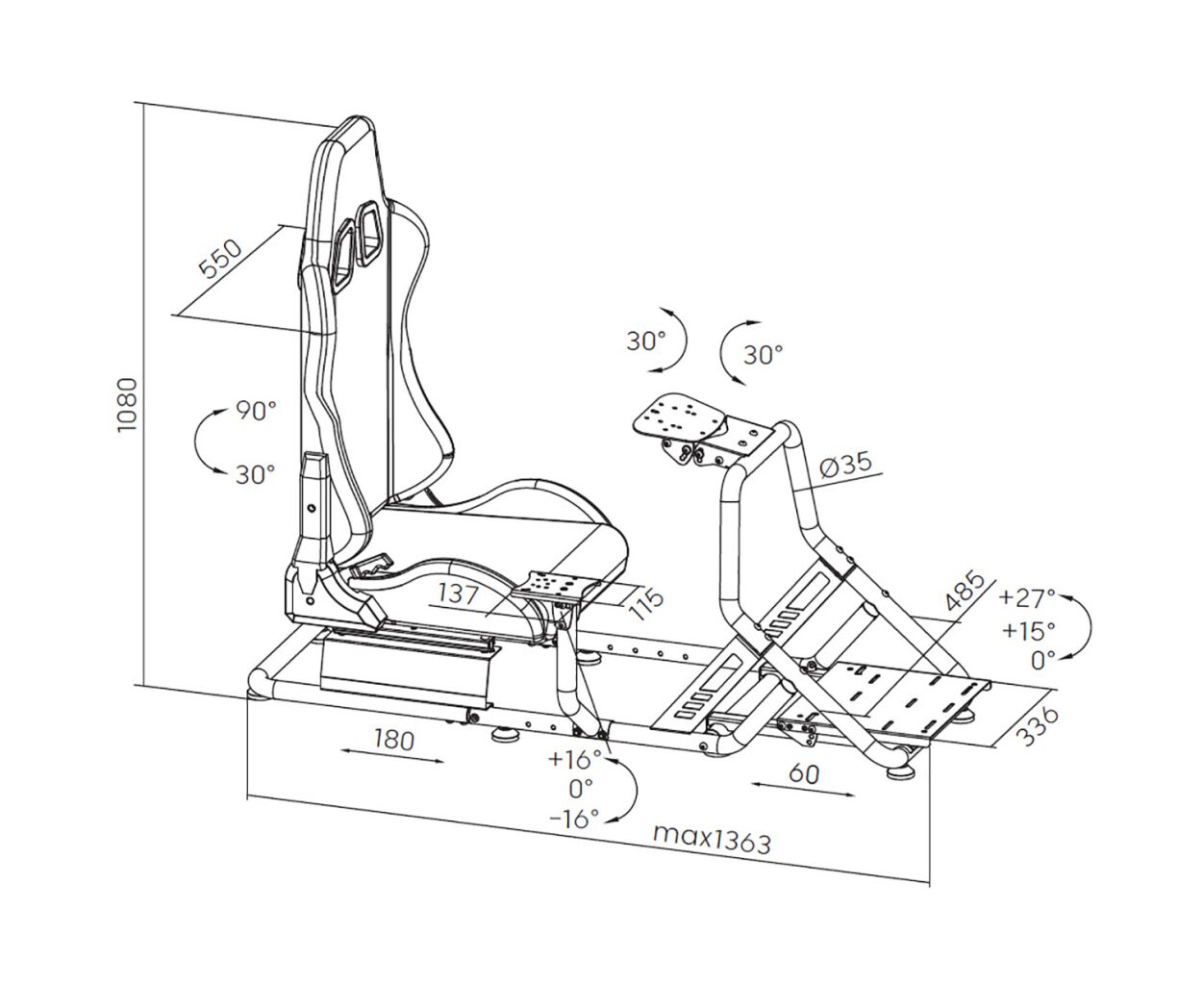 Характеристики Кресло игровое GamePro RS100 із кріпленням для керма, педалей та коробки передач Black (RS100)