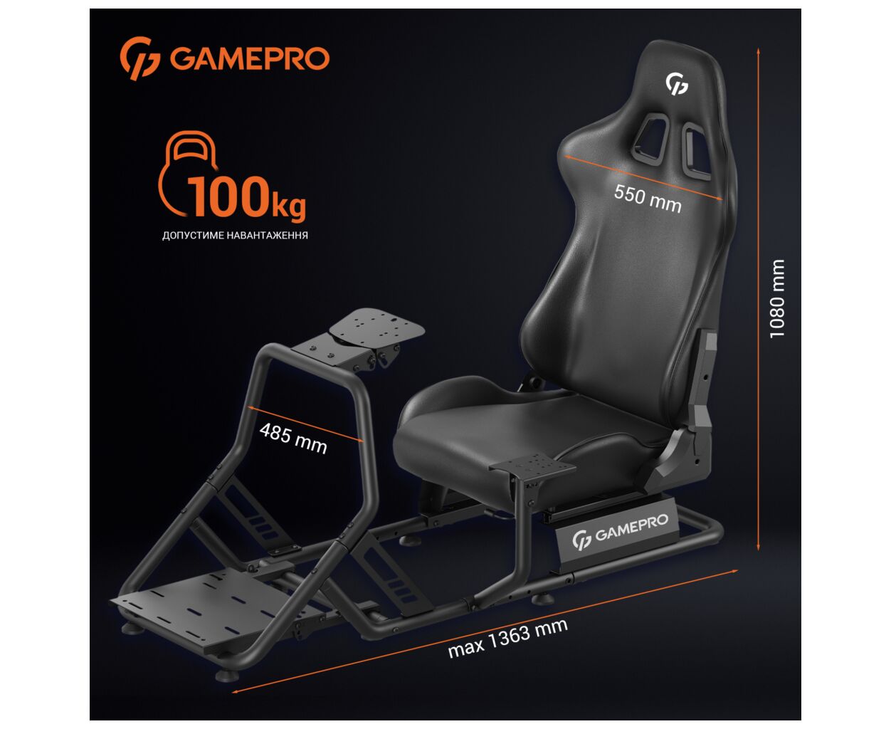 Кресло игровое GamePro RS100 із кріпленням для керма, педалей та коробки передач Black (RS100)