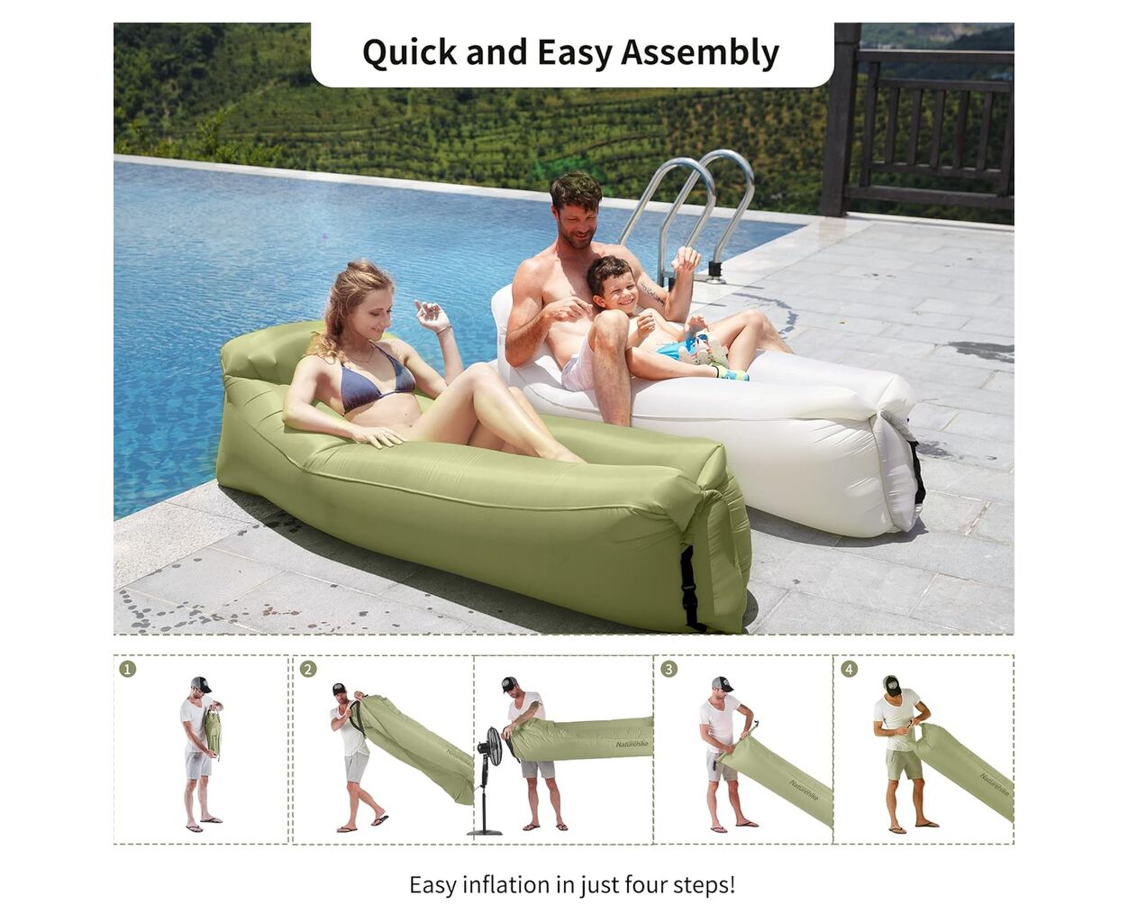 Ламзак – надувной диван для туристической деятельности и активного отдыха. Изделие отличается новым и усовершенствованным дизайном. Оно в состоянии удержать оптимальное количество воздуха, чтобы как можно дольше оставаться в надутом положении. В составе изделия – крепкий и долговечный водонепроницаемый полиэстер (210T), который характеризуется небольшим весом и имеет защиту от разрывов. Этот надувной диван способен выдерживать тяжесть до 136 килограмм. В диване есть три кармана, куда вы сможете сложить мобильный телефон, бутылку с водой и любимый журнал или книгу. Надувать диван легко и просто. Наполните его воздухом, заверните края, застегните, и ламзак готов к использованию.