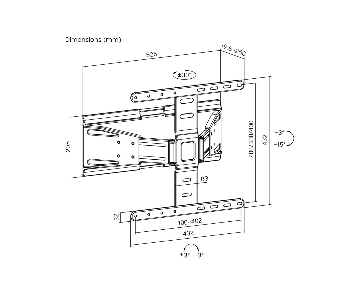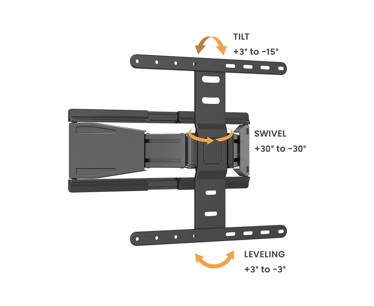 для телевизора, Тип - поворотно-наклонный, минимальная поддерживаемая диагональ - 37", максимальная поддерживаемая диагональ - 75", VESA - 200 x 200, 200 x 300, 300 x 200, 200 x 400, 300 x 300, 400 x 200, 400 x 300, 400 x 400, 100 x 200, 300 x 400, Максимальная нагрузка - 50 кг, Наклон - 3° ~ -15°, Поворот - +30°~-30°, кронштейн, инструкция, монтажный комплект, черный