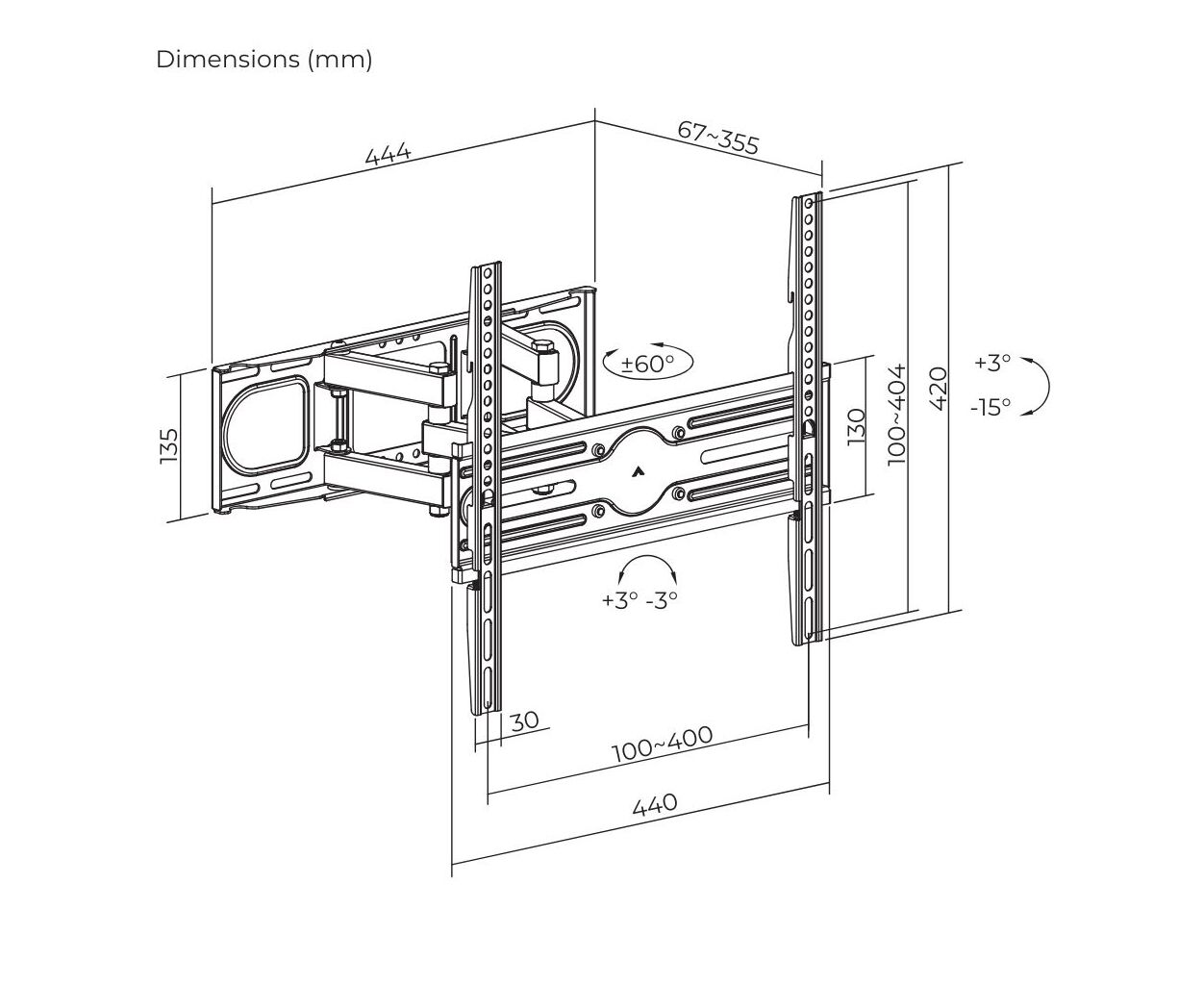 ITech PTRB14 также обеспечивает значительное количество степеней свободы — всего 7, что позволяет наклонять телевизор в пределах от +3° до -15° и поворачивать в обе стороны до 60°, создавая лучшие условия для просмотра фильмов, спортивных трансляций и других программ.