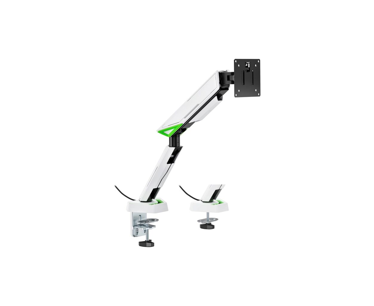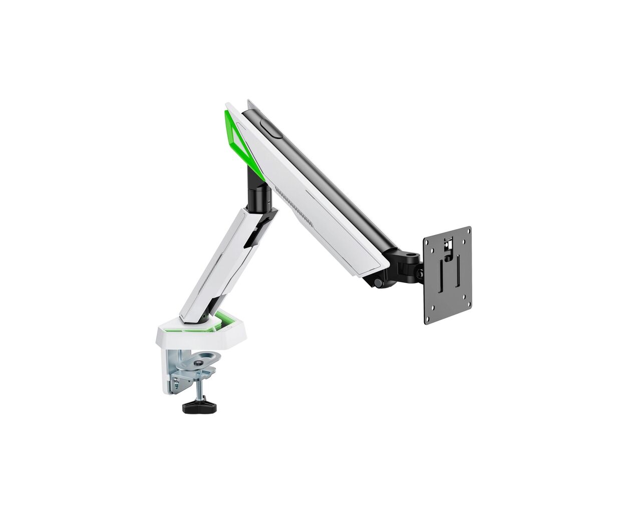 для монитора, Тип - поворотно-наклонный, количество степеней свободы - 5, минимальная поддерживаемая диагональ - 17", максимальная поддерживаемая диагональ - 45", VESA - 75 x 75, 100 x 100, Максимальная нагрузка - 16 кг, Наклон - +60°~-60°, Поворот - +90°~-90°, Вращение - +180° ~ -180°, с регулировкой по высоте, для крепления изогнутых экранов, со скрытой укладкой проводов, вращение: ±180°, с регулировкой глубины, со светодиодной подсветкой, белый