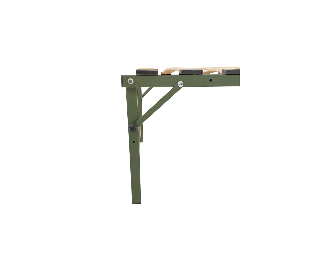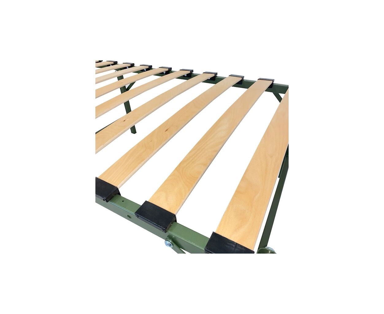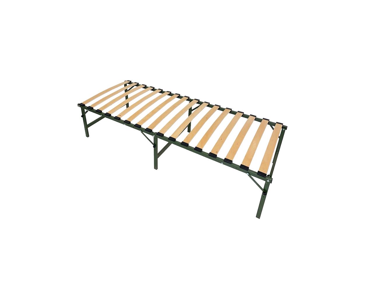 Тип - односпальные, Спальное место - 1, Материал каркаса - сталь, Основа под матрас - деревянные ламели, Цвет - оливковый