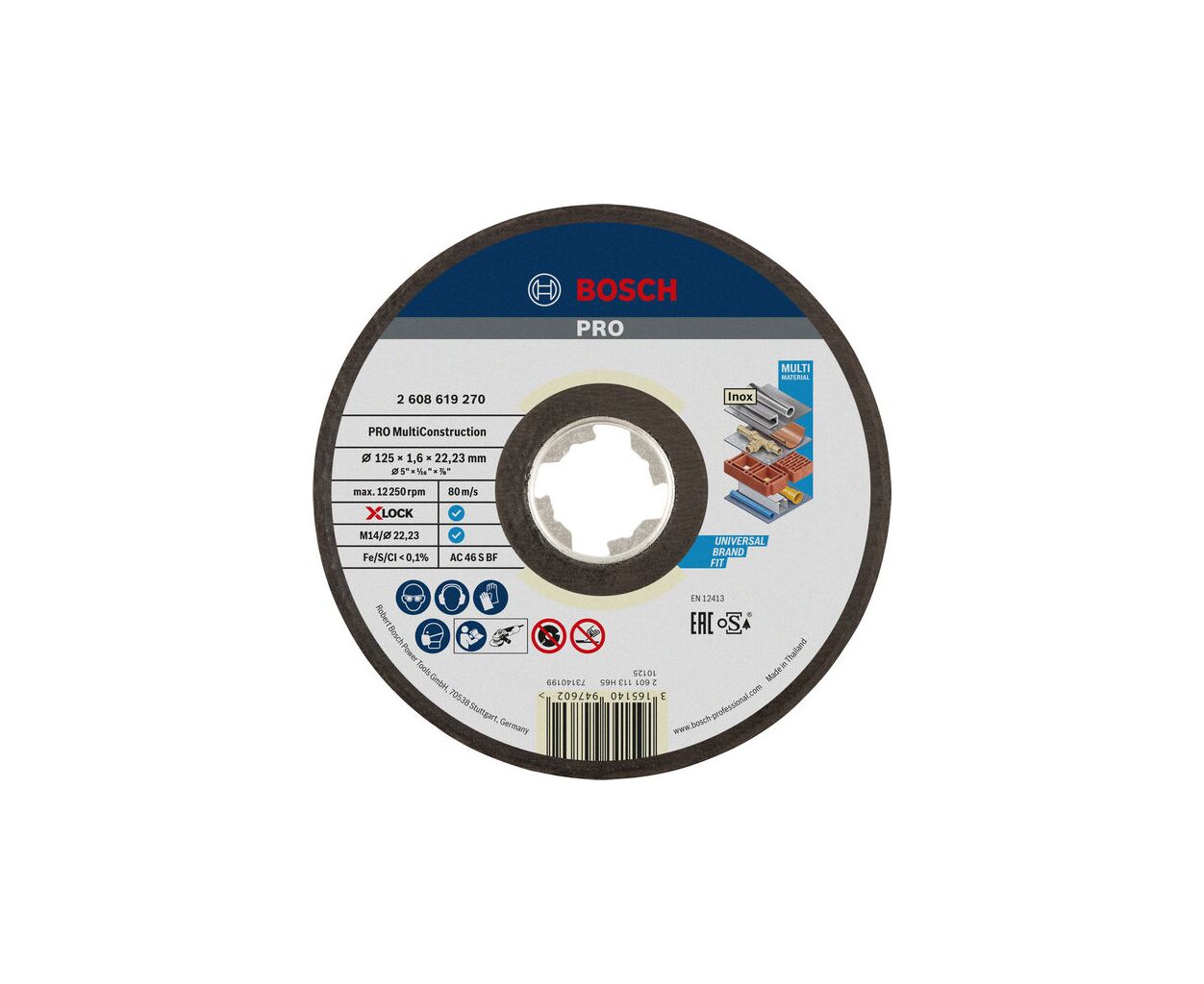 Описание Круг отрезной Bosch X-LOCK Multi Material, 125x1.6x22.2мм (2.608.619.270)