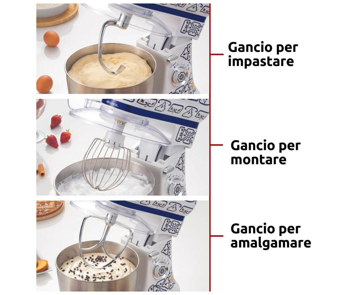 Новая кухонная машина от ARIETE может похвастаться и внушительным объёмом чаши - 5,5 л. Приготовить быстрый полезный обед для всей семьи или большой компании гостей - теперь не проблема. 10 скоростей + импульсный режим - блюда точно будут разнообразными! Благодаря вместимости чаши ARIETE VINTAGE 1588 идеальна даже для приготовления домашнего хлеба! Любые эксперименты - от ресторанных деликатесов до старых рецептов любимой бабушки - теперь это все на вашей кухне. Венчик, крюк для теста, насадка для смешивания - в комплекте; они изготовлены из прочных экологичных материалов. Сама конструкция чаши создана с учётом последних достижений эргономики - при своём впечатляющем функциональном наборе и вместимости она поместится даже на небольшой кухне и будет успешно выполнять свою работу.