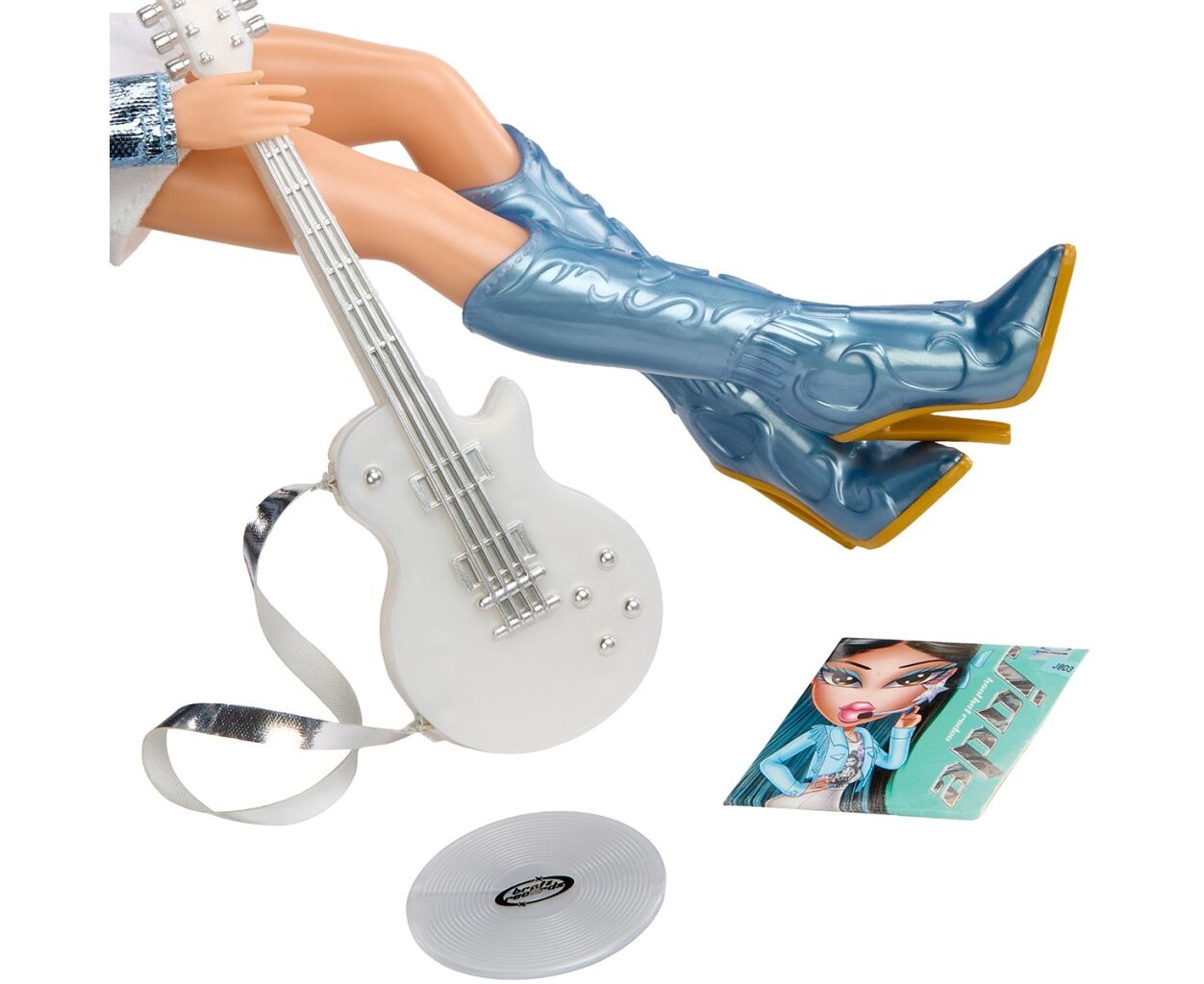 - Кукла, куртка, топ, юбка, пара обуви, пара сережек, наушники, игрушечная гитара, игрушечная виниловая пластинка в обложке, расческа, коллекционный шарм